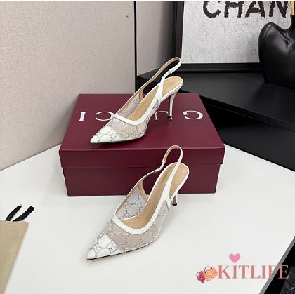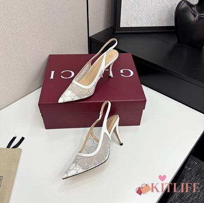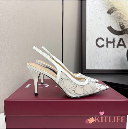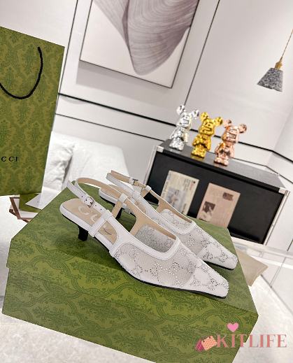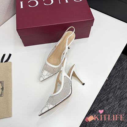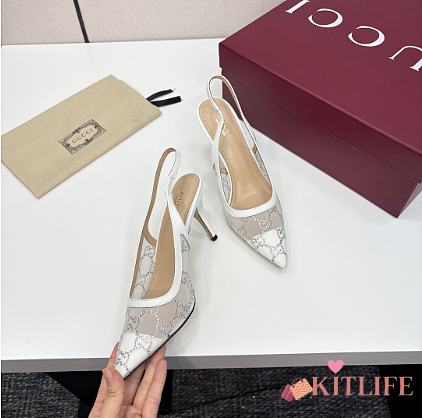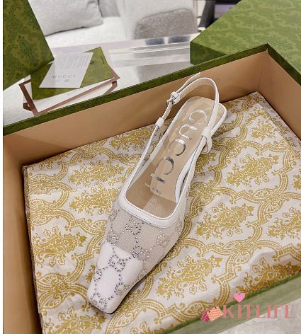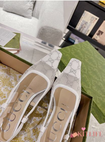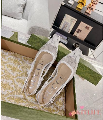 Kitlife Gucci Tom Embellished Crystal GG Slingback Pumps in White