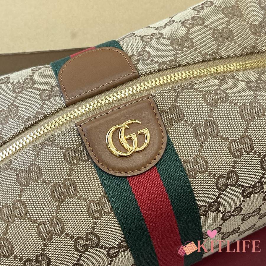 Kitlife Gucci Vanity Medium Top Handle Bag Beige & Brown GG Canvas 857799 27.5x13x14.5cm