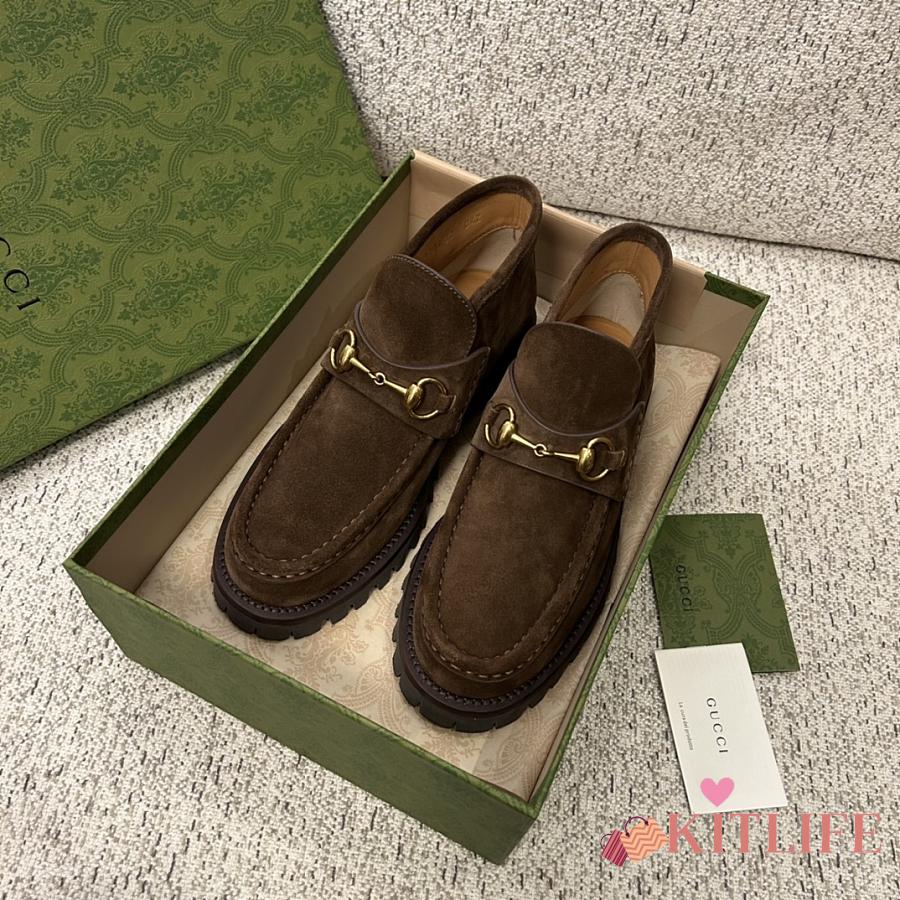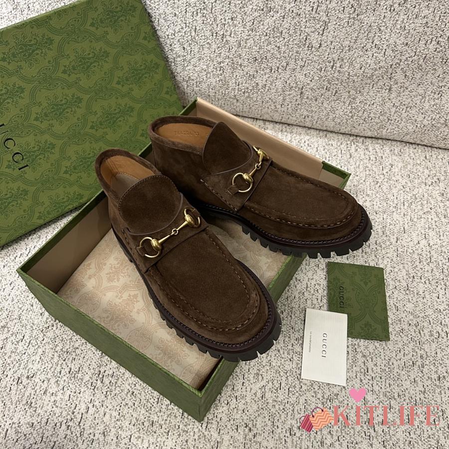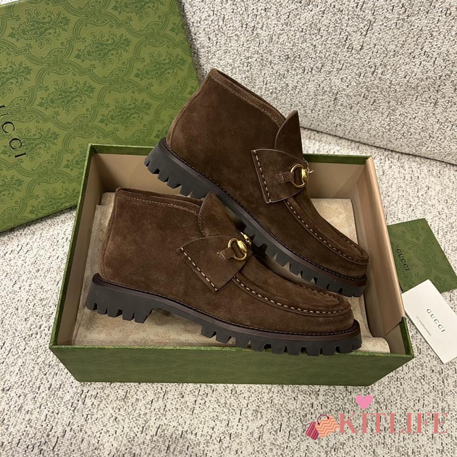 Kitlife Gucci Women's Horsebit Ankle Boots in Dark Brown Suede