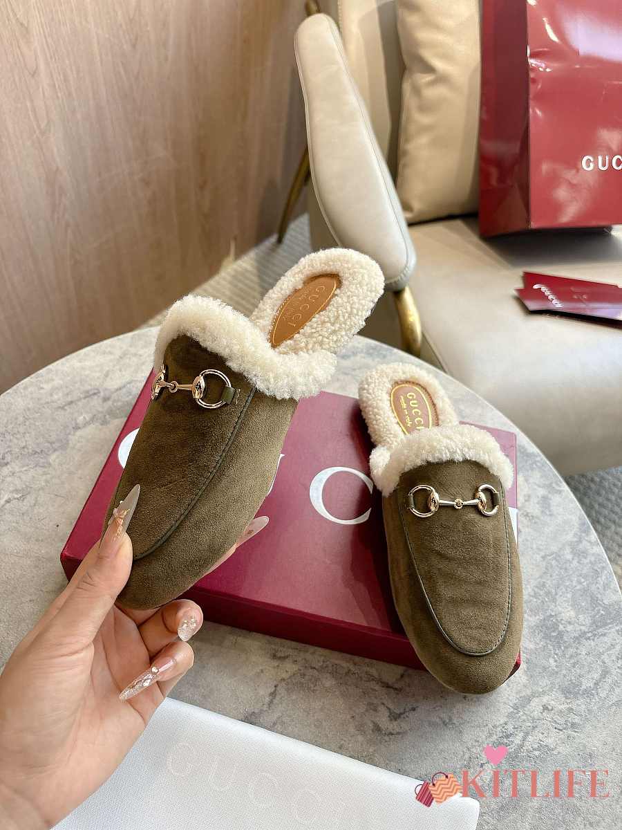 Kitlife Gucci Women's Princetown Slipper Green Olive Suede