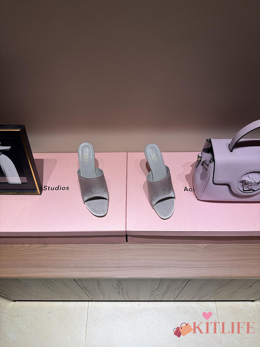 Kitlife Gucci Women's Slide Sandals Light Blue Satin