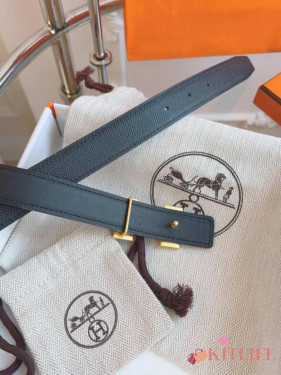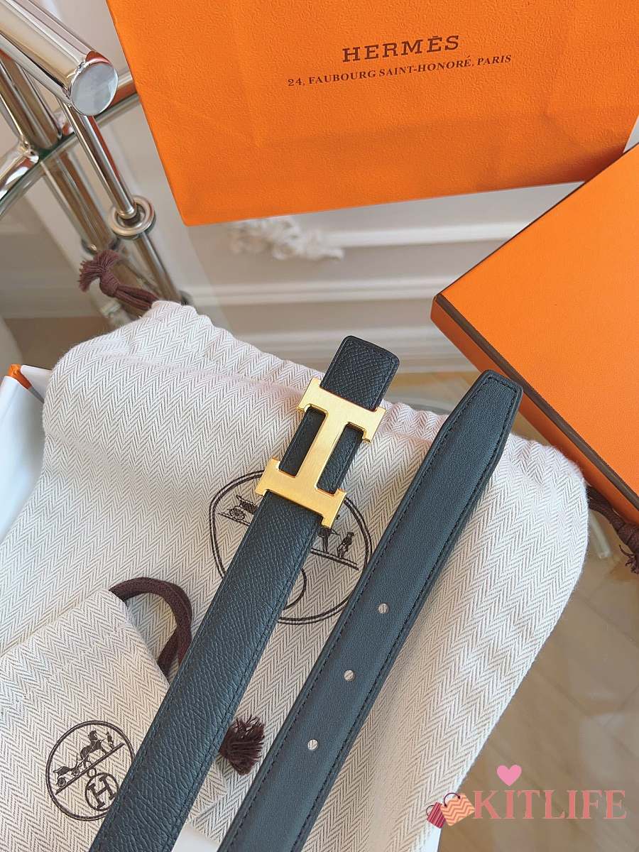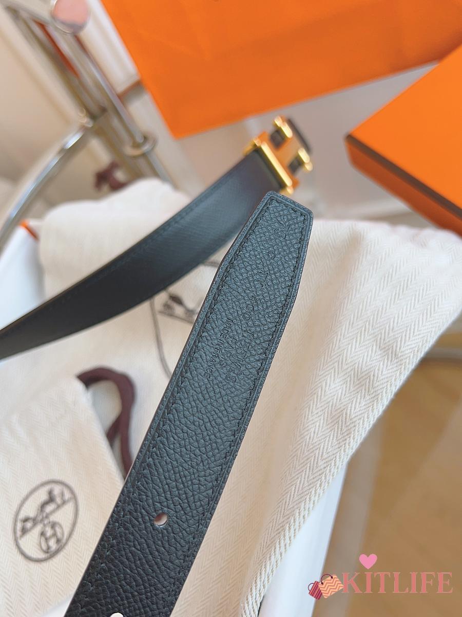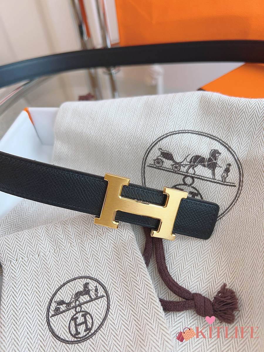 Kitlife Hermes Belts Black With Gold Buckle 38mm