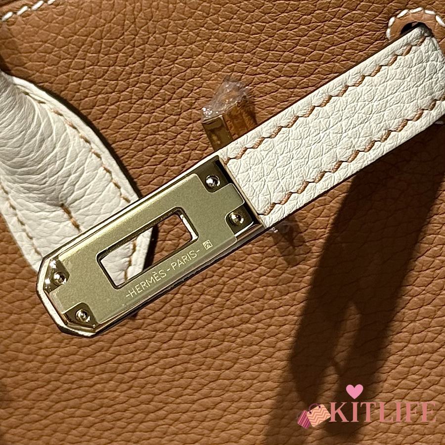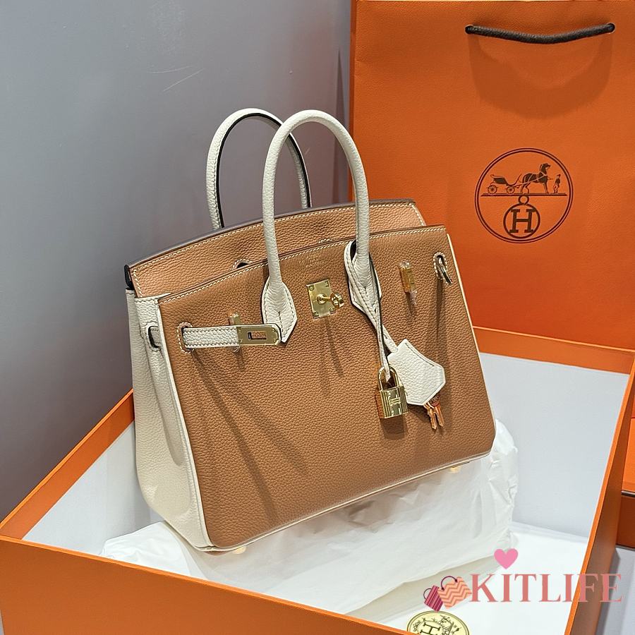 Kitlife Hermes Birkin Togo Brown & White Leather 25cm