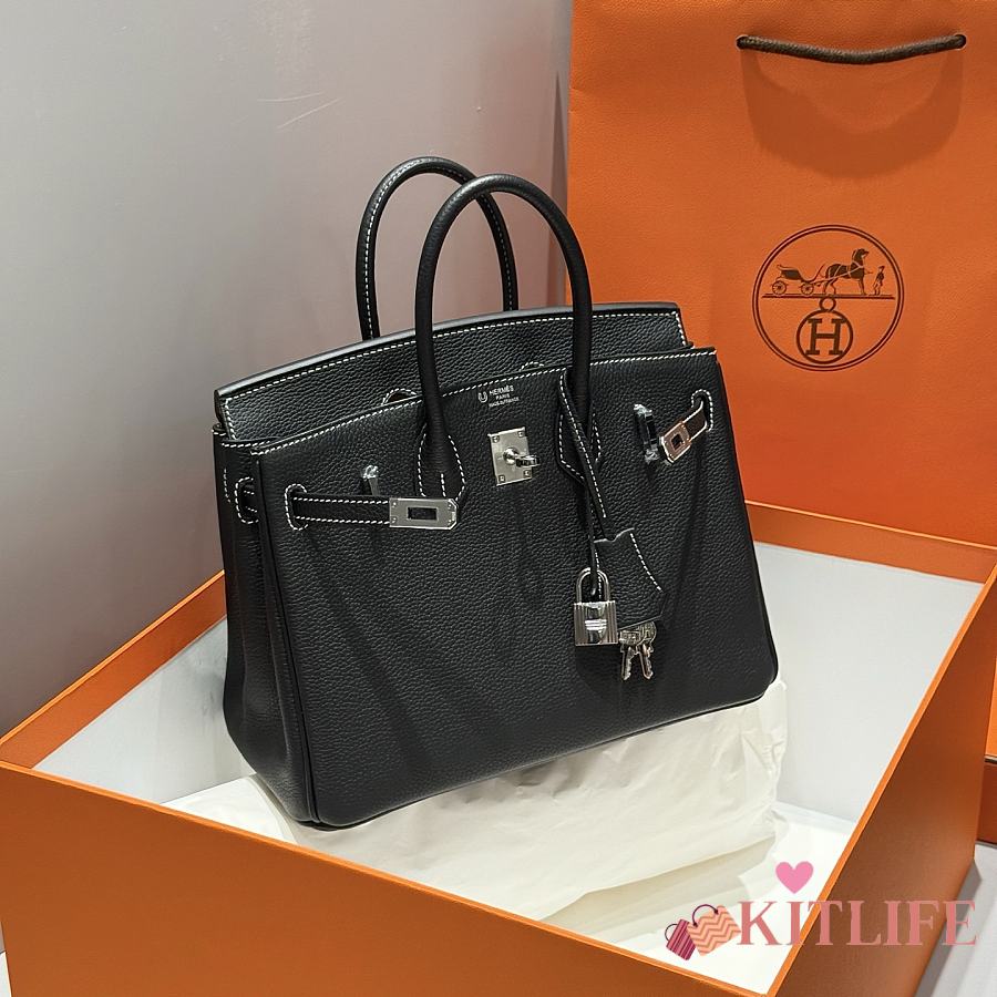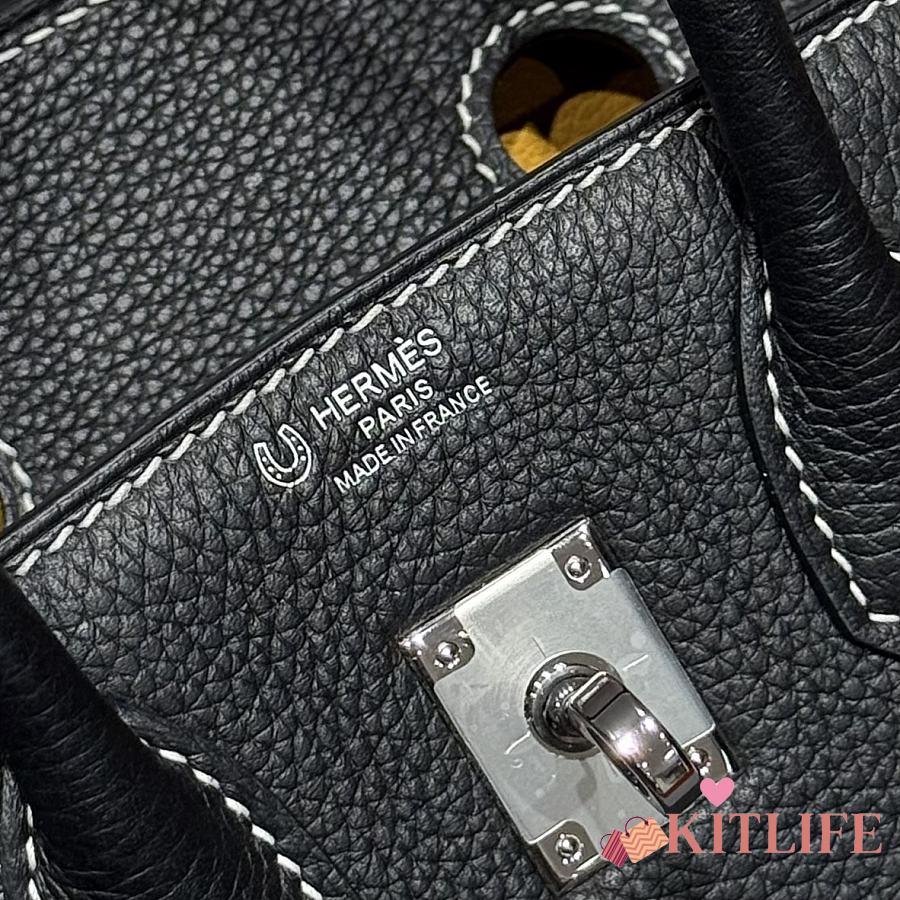 Kitlife Hermes Birkin Togo Dove Black & Amber Yellow Leather 25cm