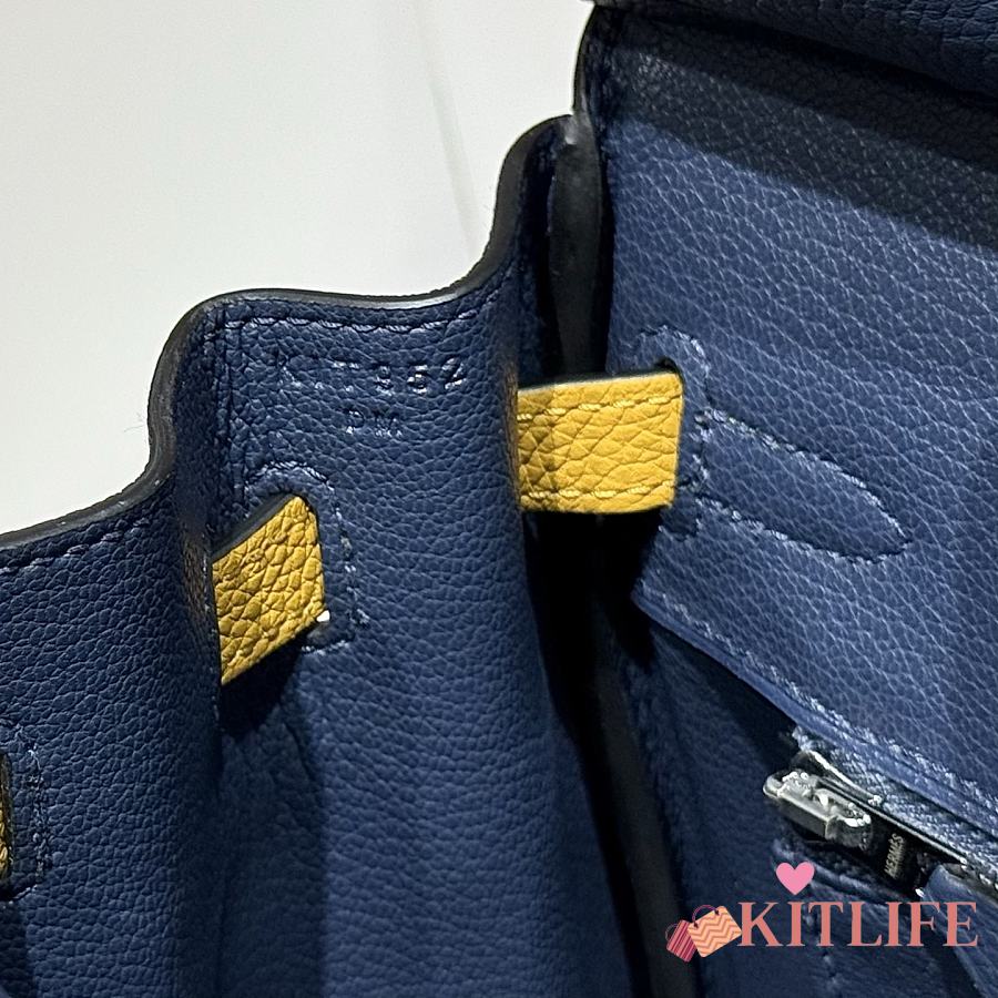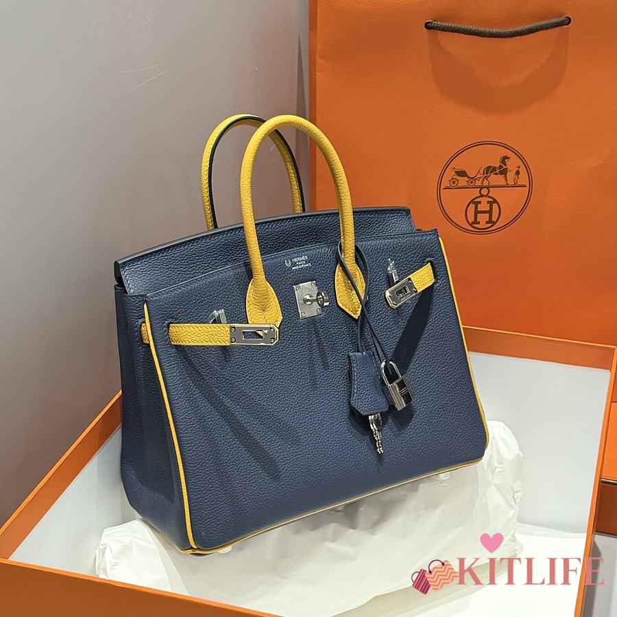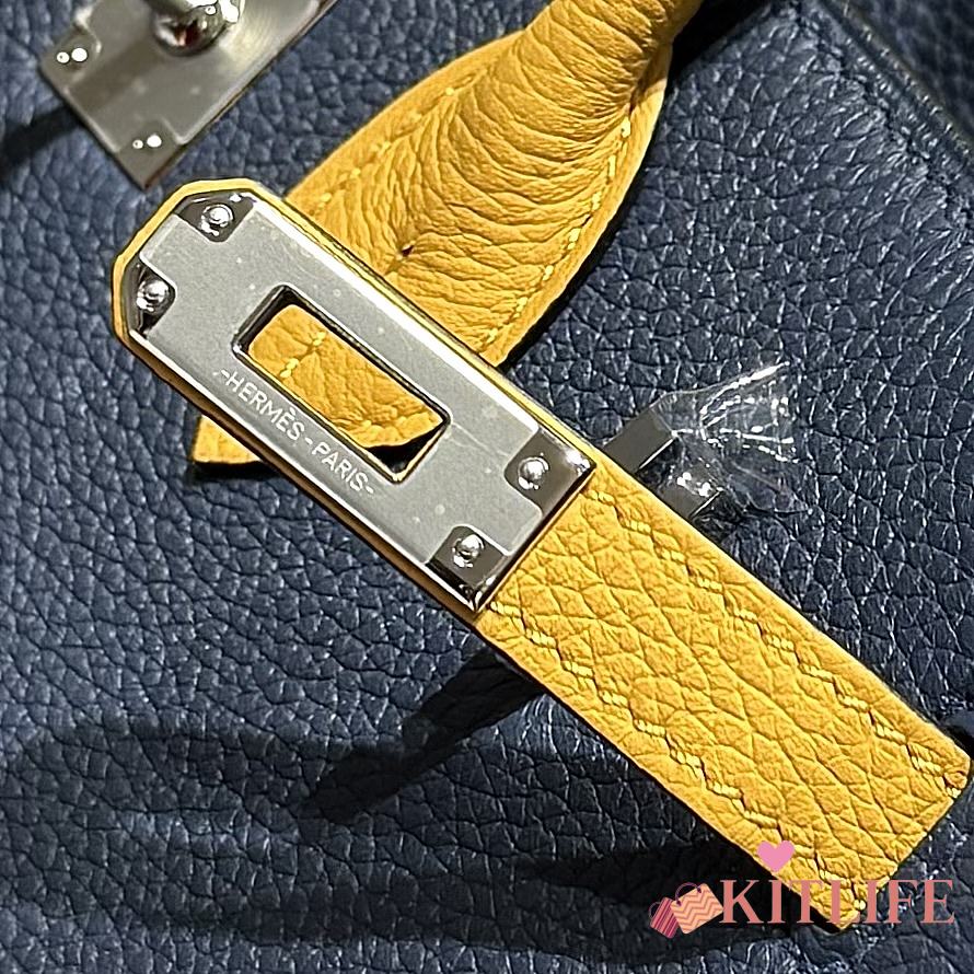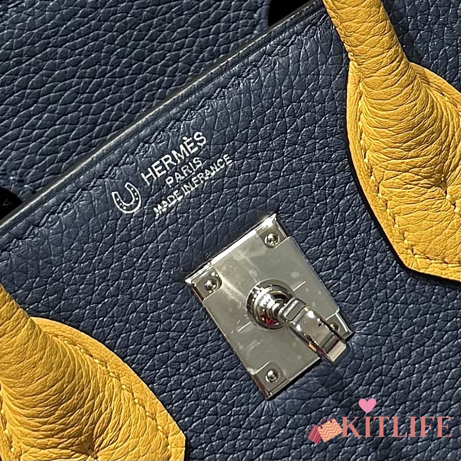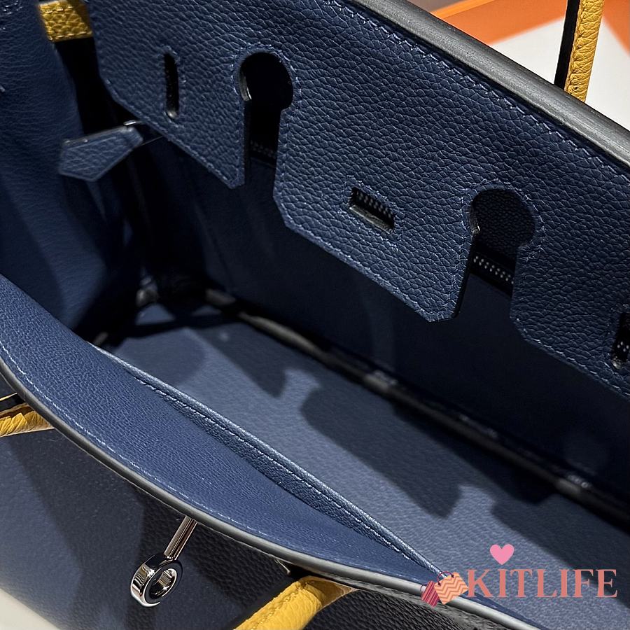 Kitlife Hermes Birkin Togo Navy Blue & Amber Yellow Leather 25cm