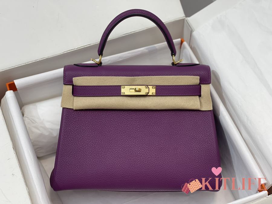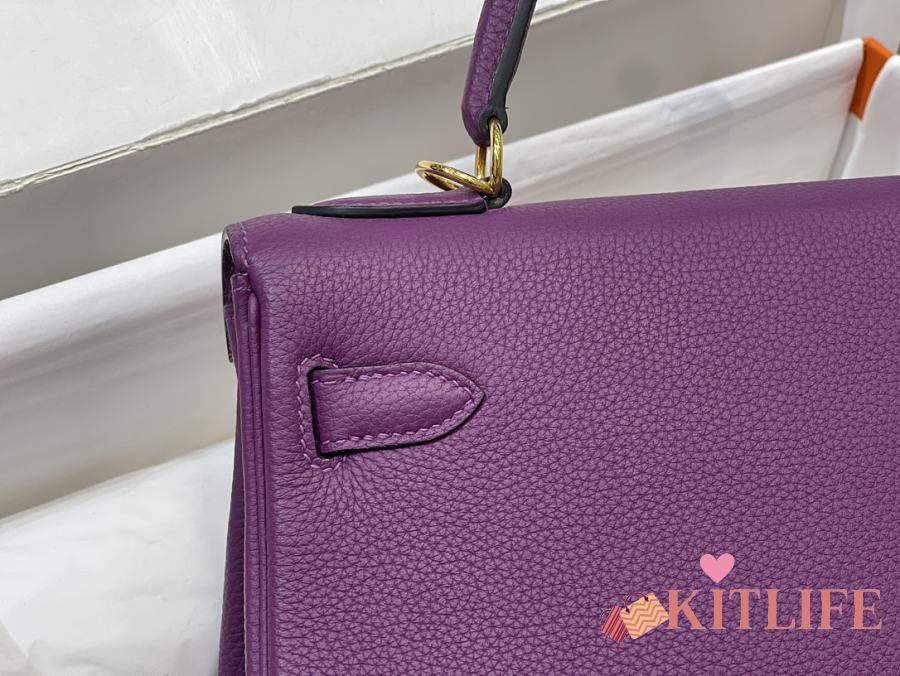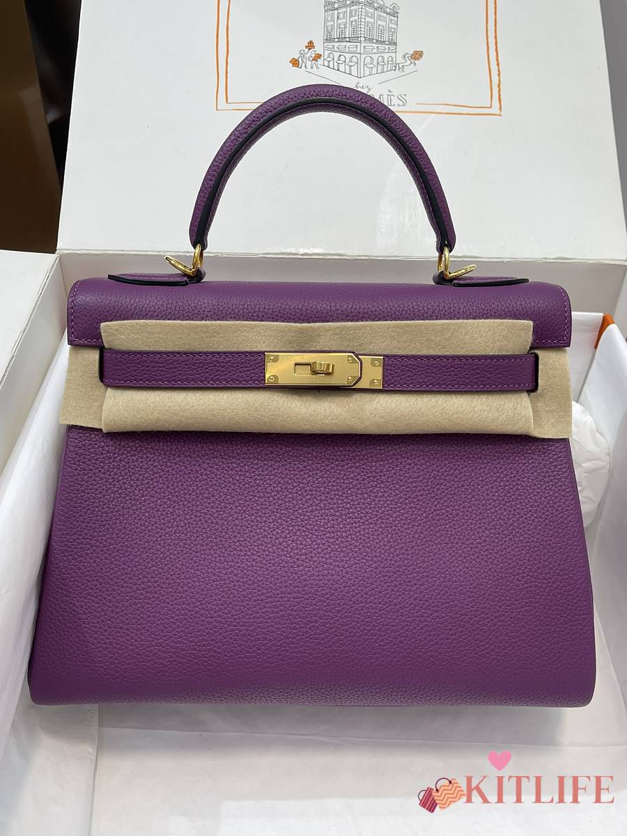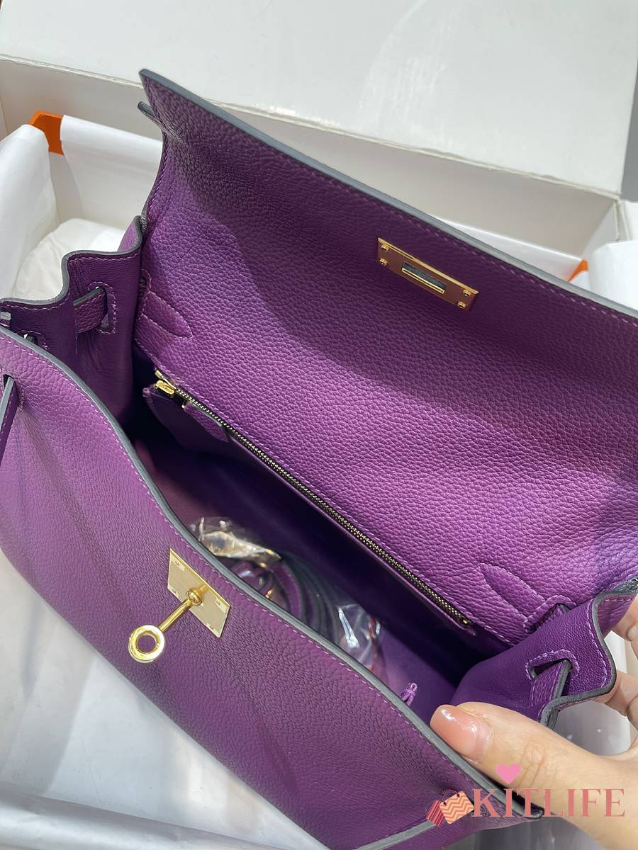 Kitlife Hermes Kelly Bag Togo Purple Leather With Gold Buckle 28cm