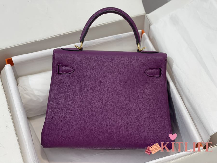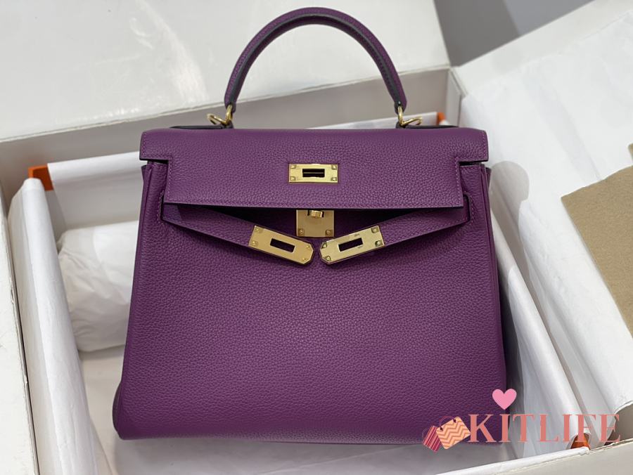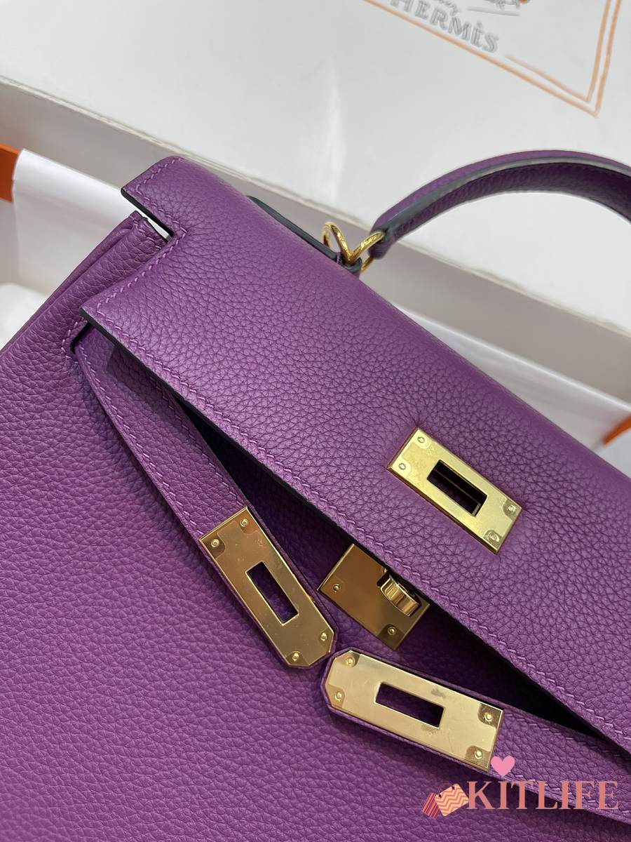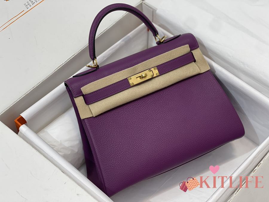 Kitlife Hermes Kelly Bag Togo Purple Leather With Gold Buckle 28cm