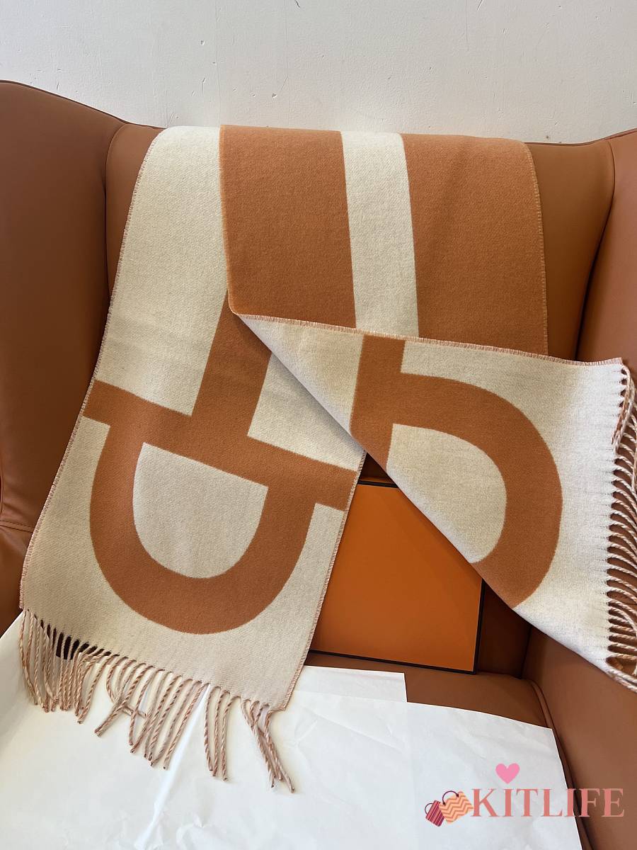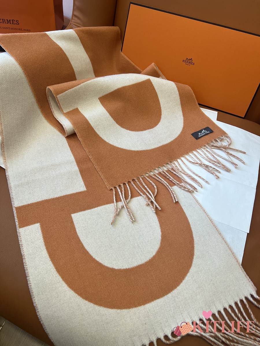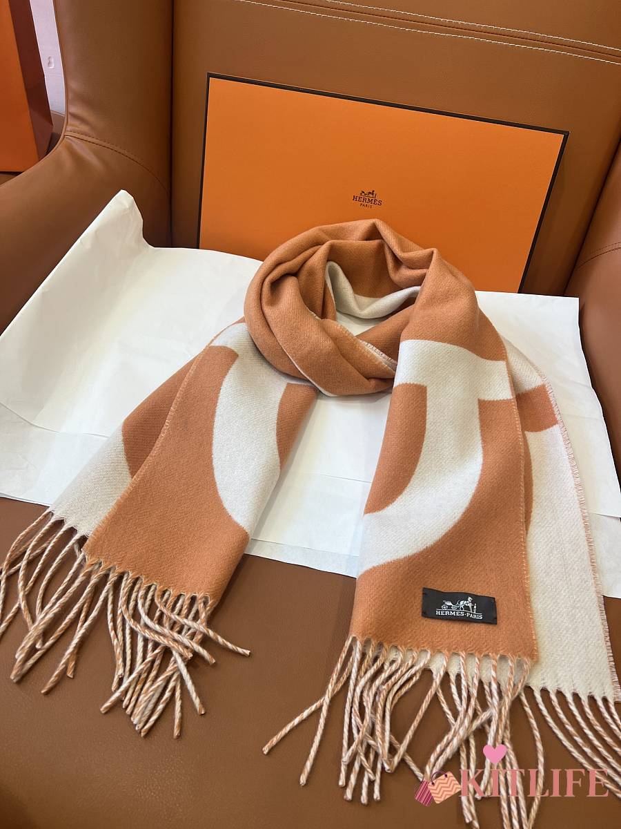 Kitlife Hermes Stirrup Cashmere Long Scarf Brown & Beige 30x140cm