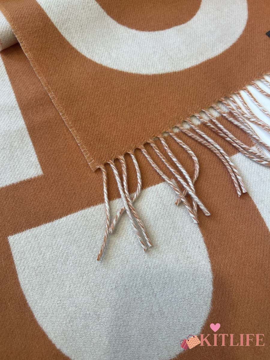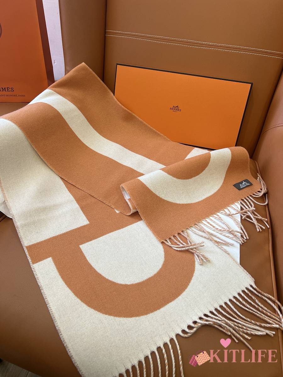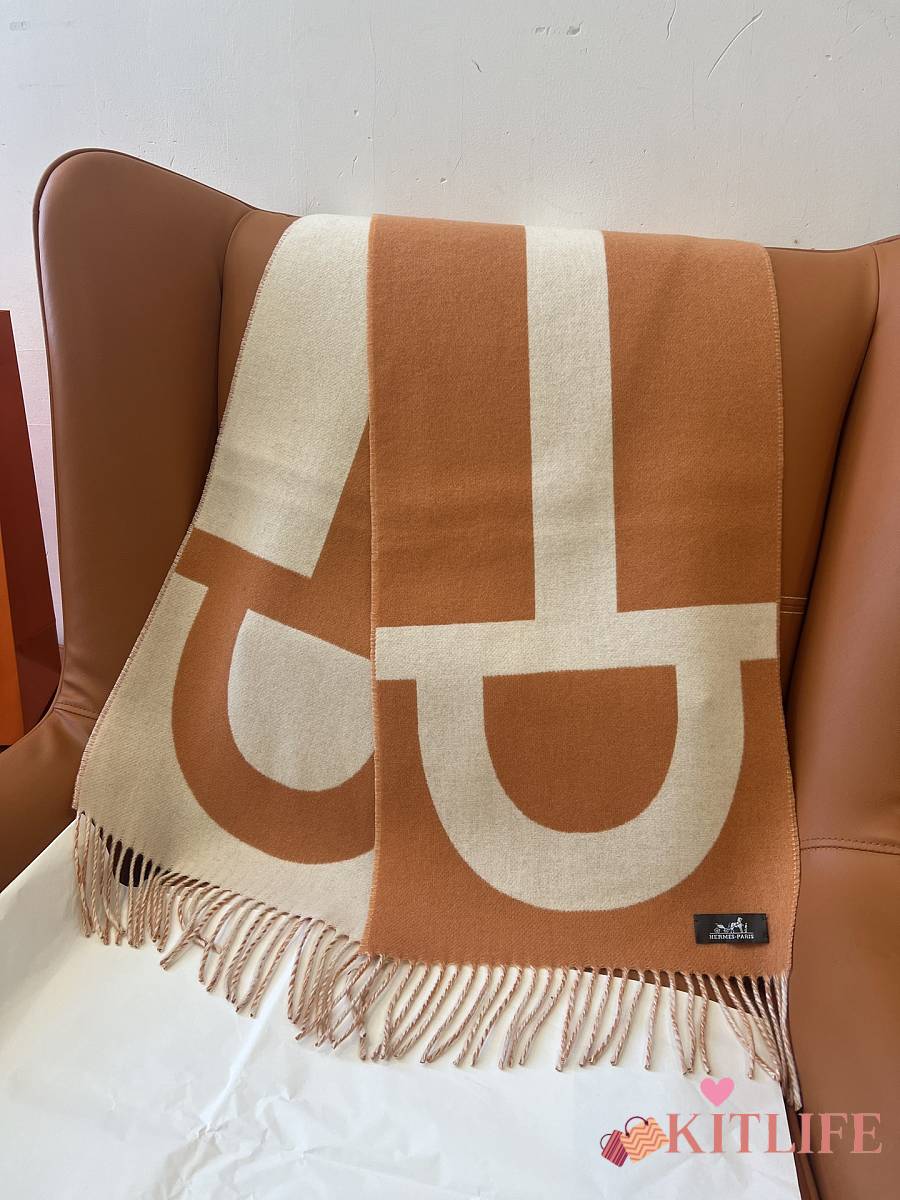Kitlife Hermes Stirrup Cashmere Long Scarf Brown & Beige 30x140cm
