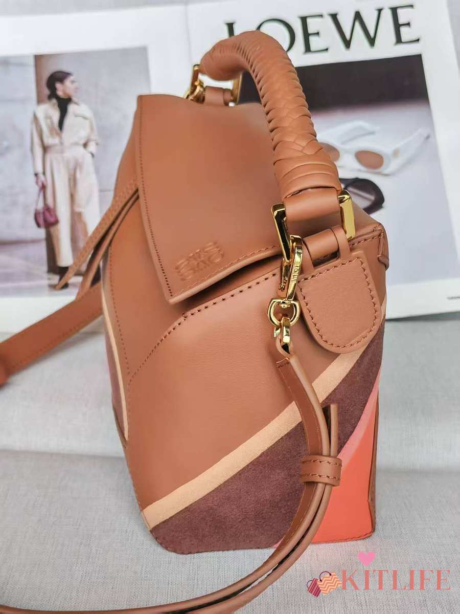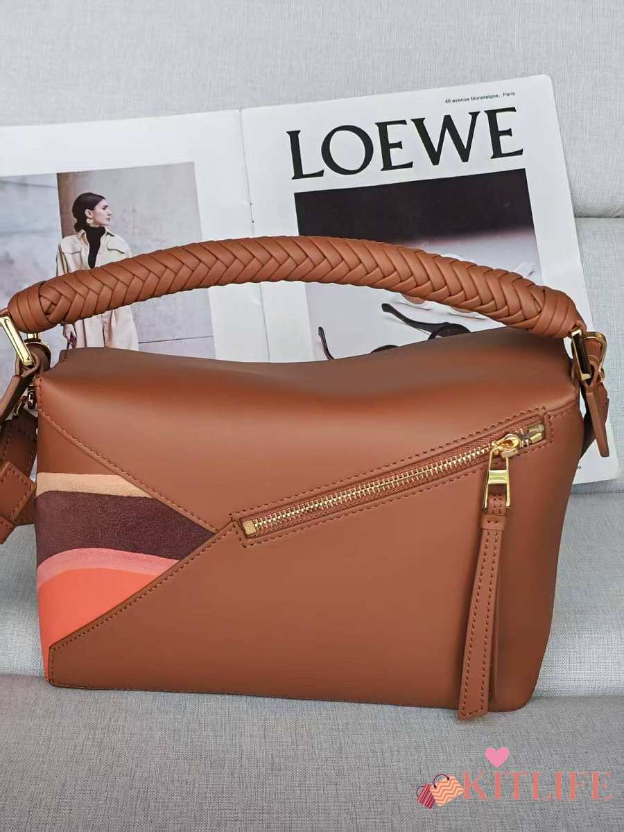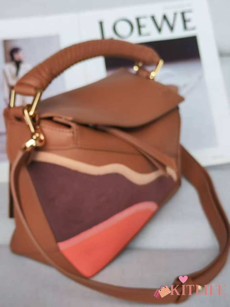 Kitlife Loewe Brown Leather Patchwork Puzzle Bag 24x10x14cm