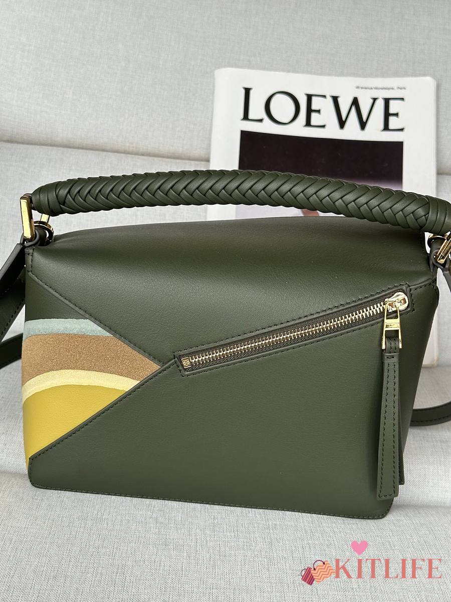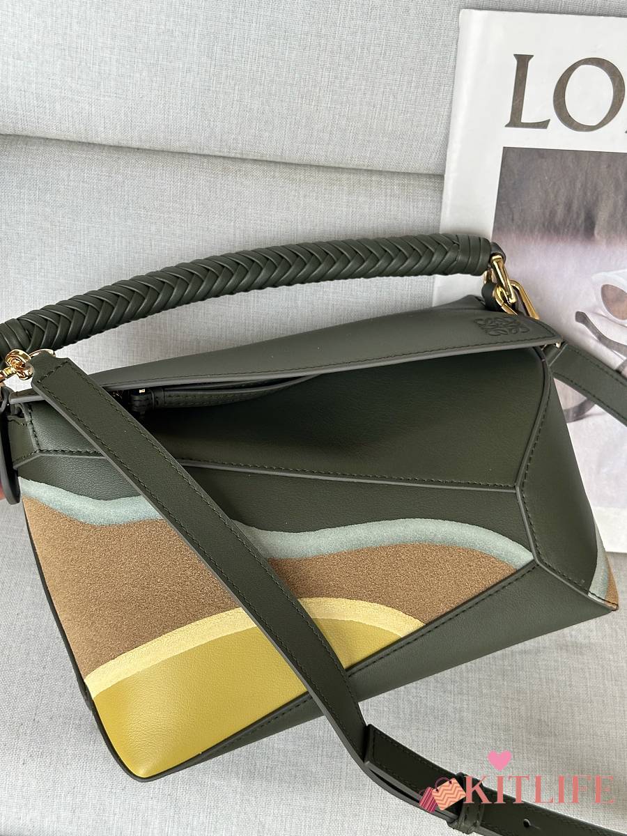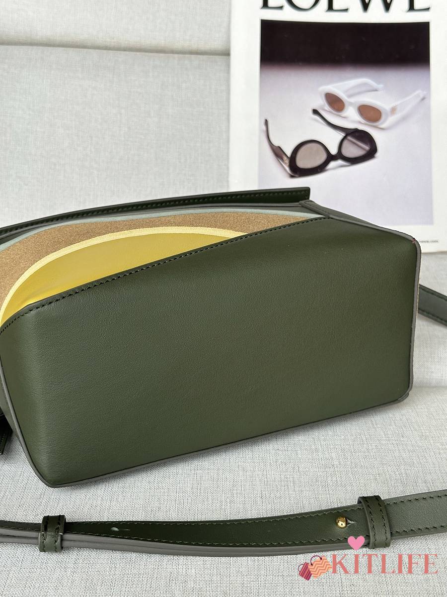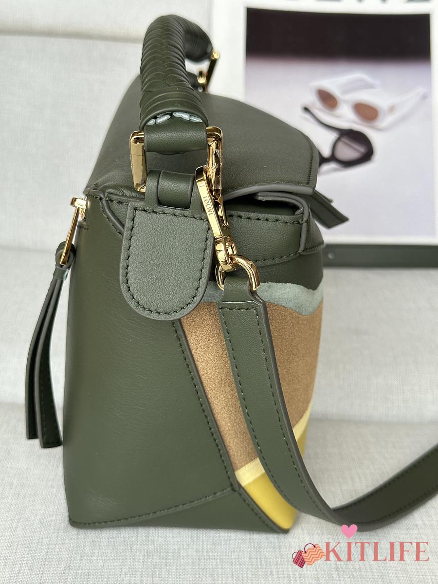 Kitlife Loewe Green Leather Patchwork Puzzle Bag 24x10x14cm