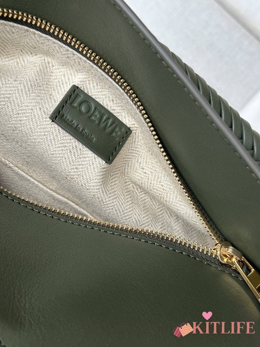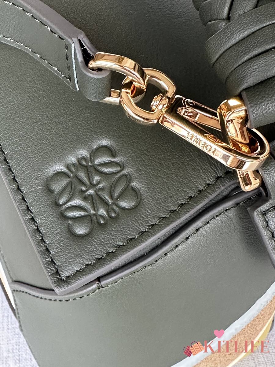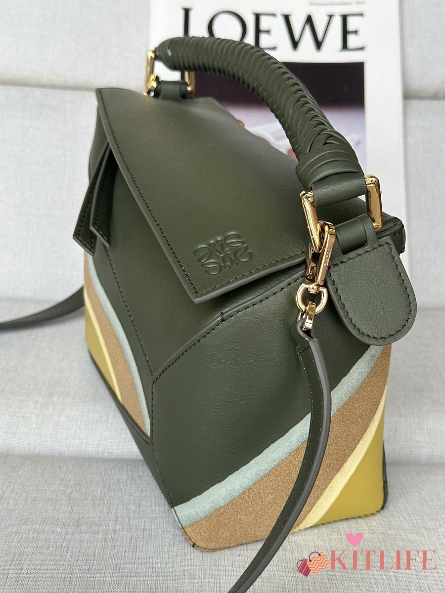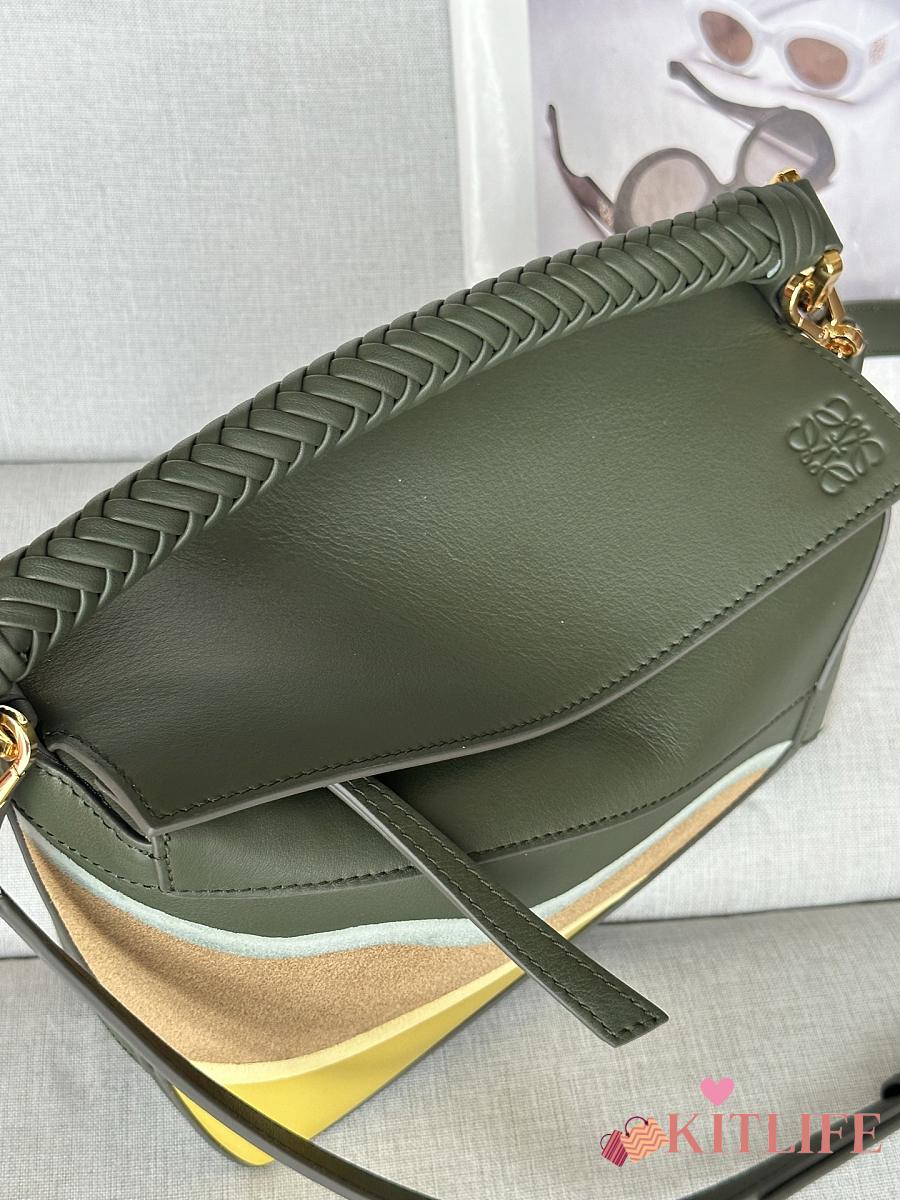 Kitlife Loewe Green Leather Patchwork Puzzle Bag 24x10x14cm