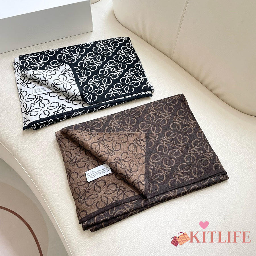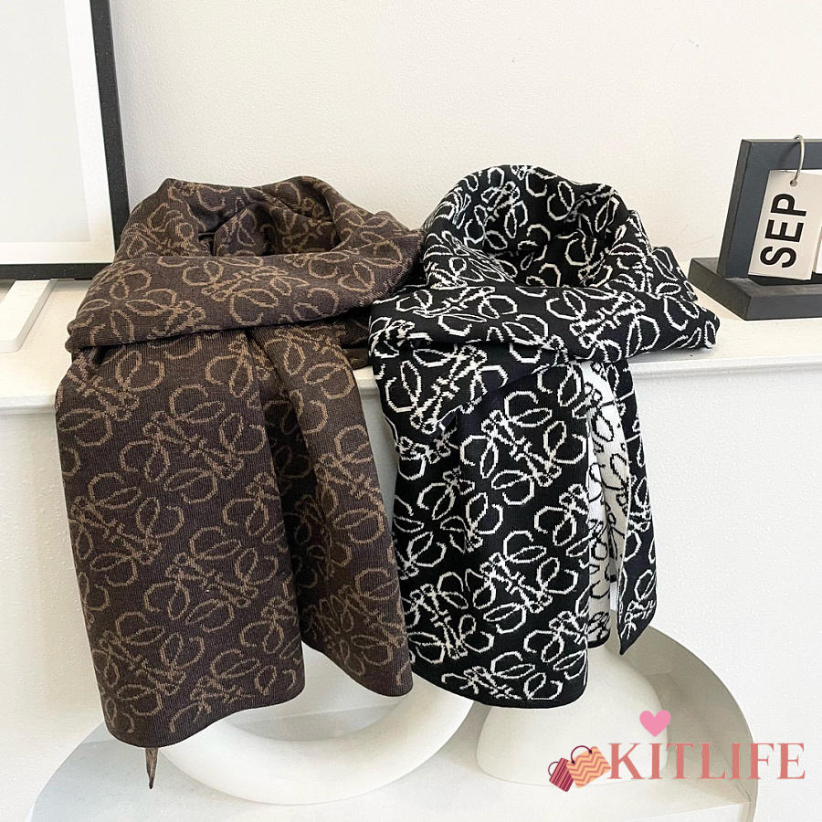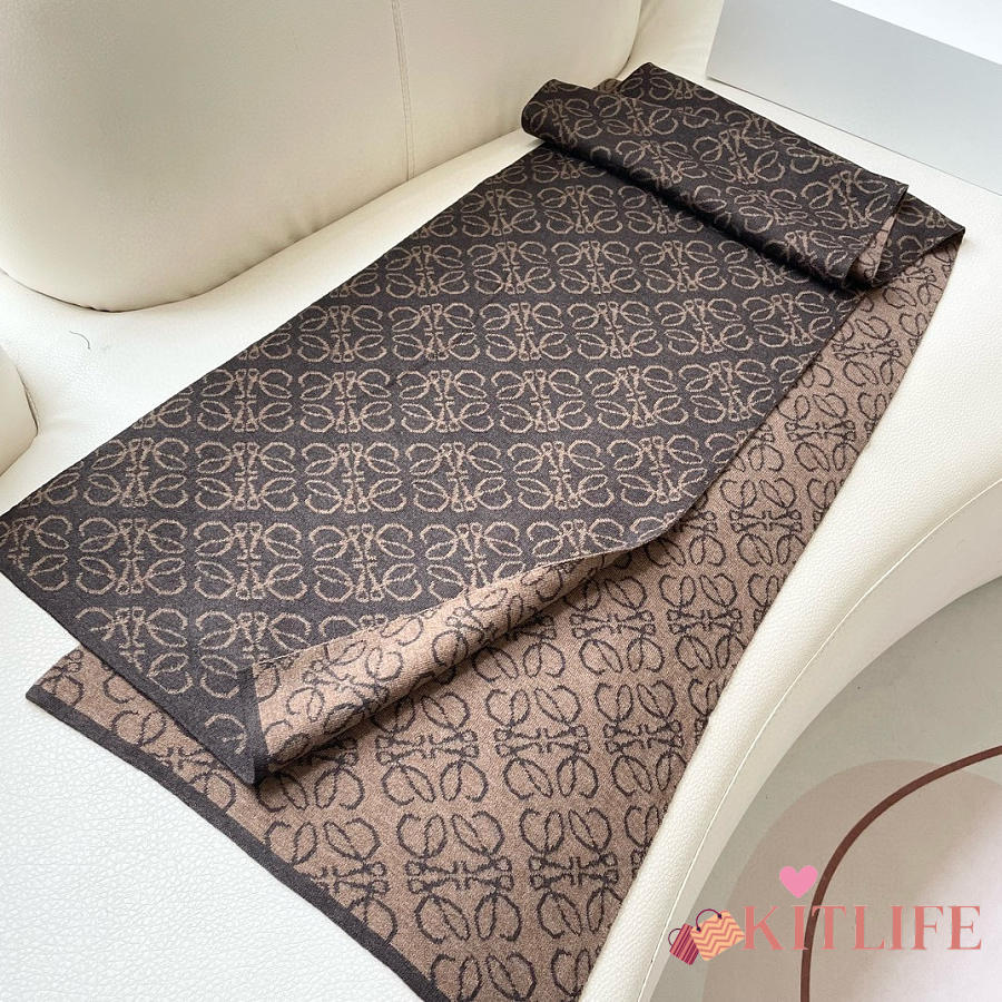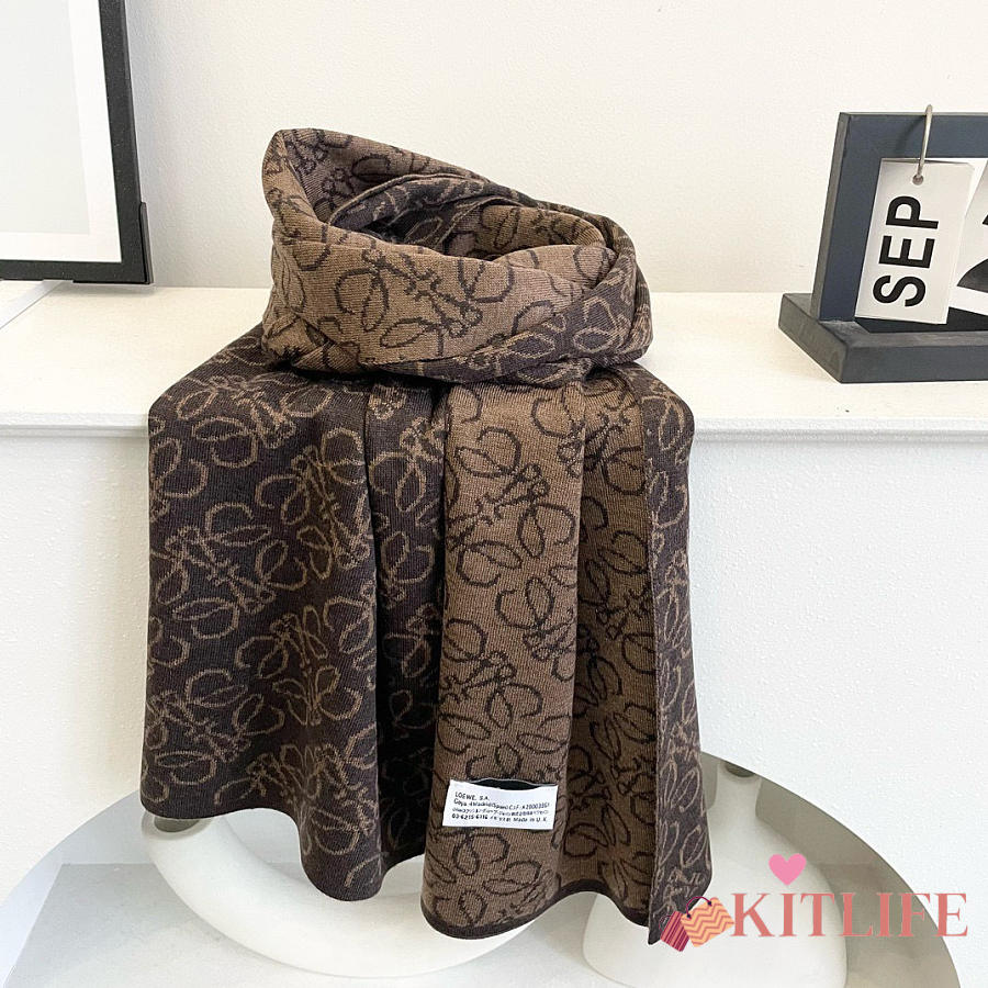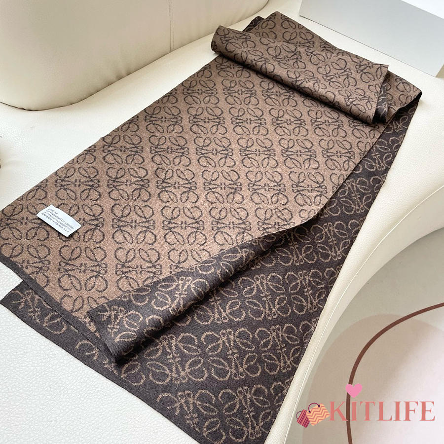 Kitlife Loewe Knitted Cashmere Scarf Brown & Beige 180x32cm