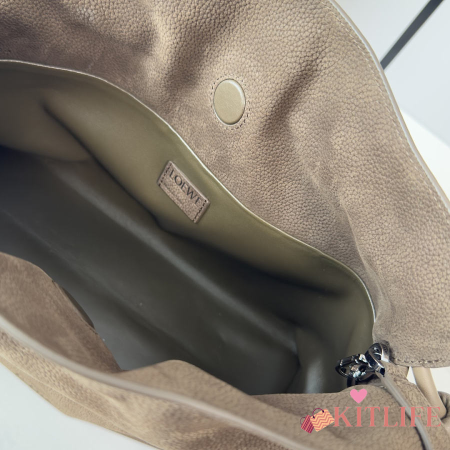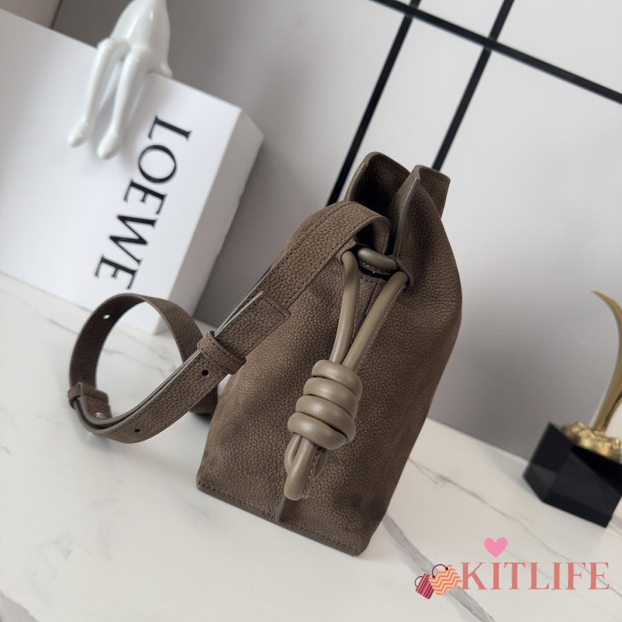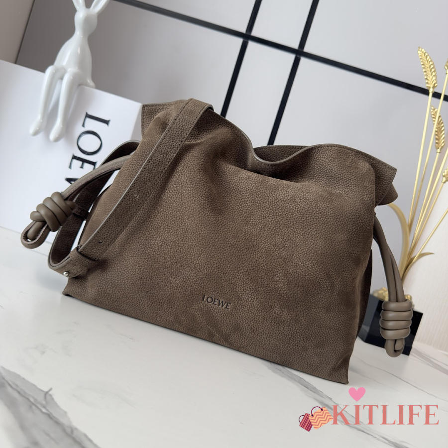 Kitlife Loewe Medium Grained Nubuck Flamenco Bag Dark Brown 30x24.5x10.5cm