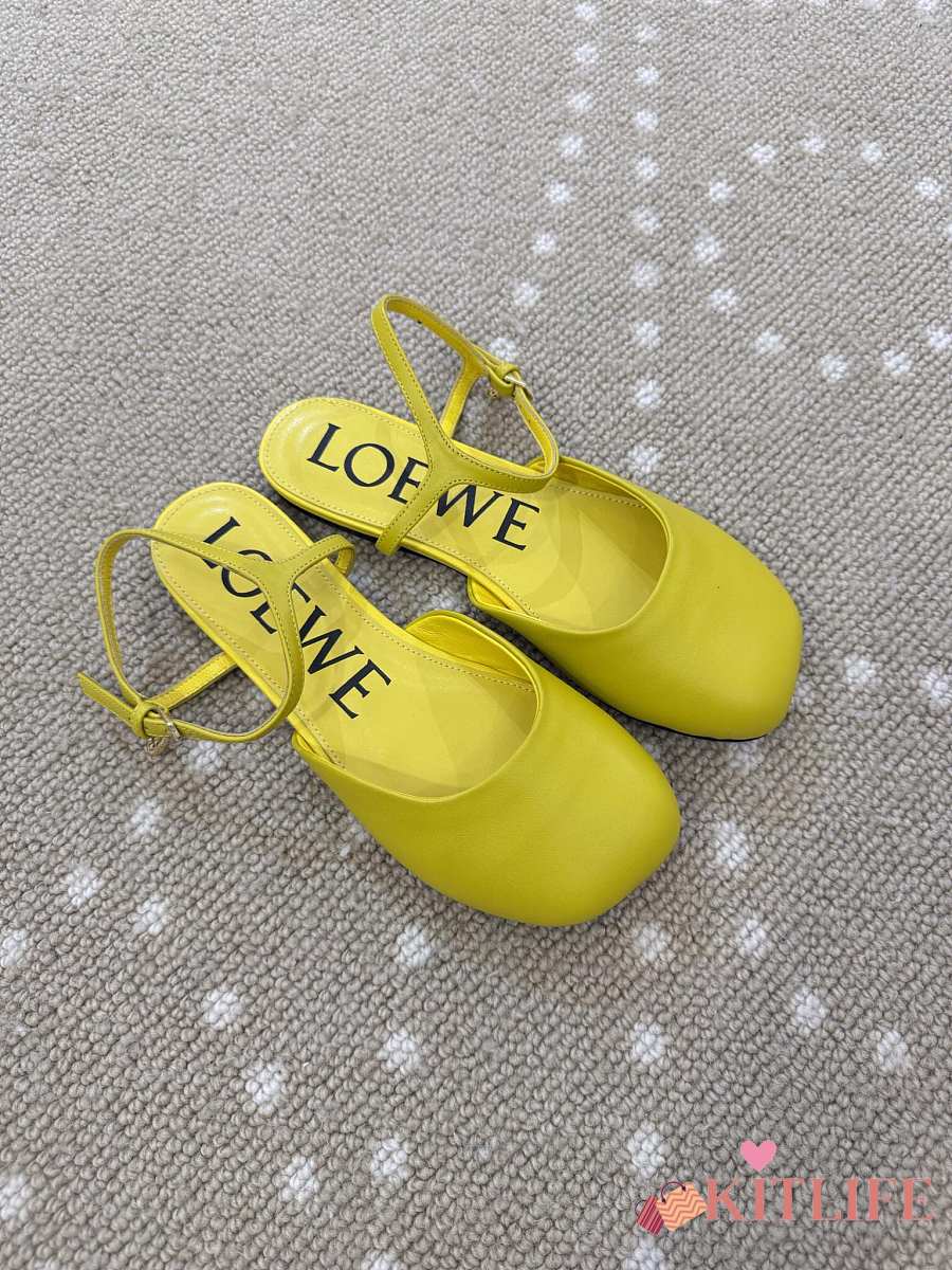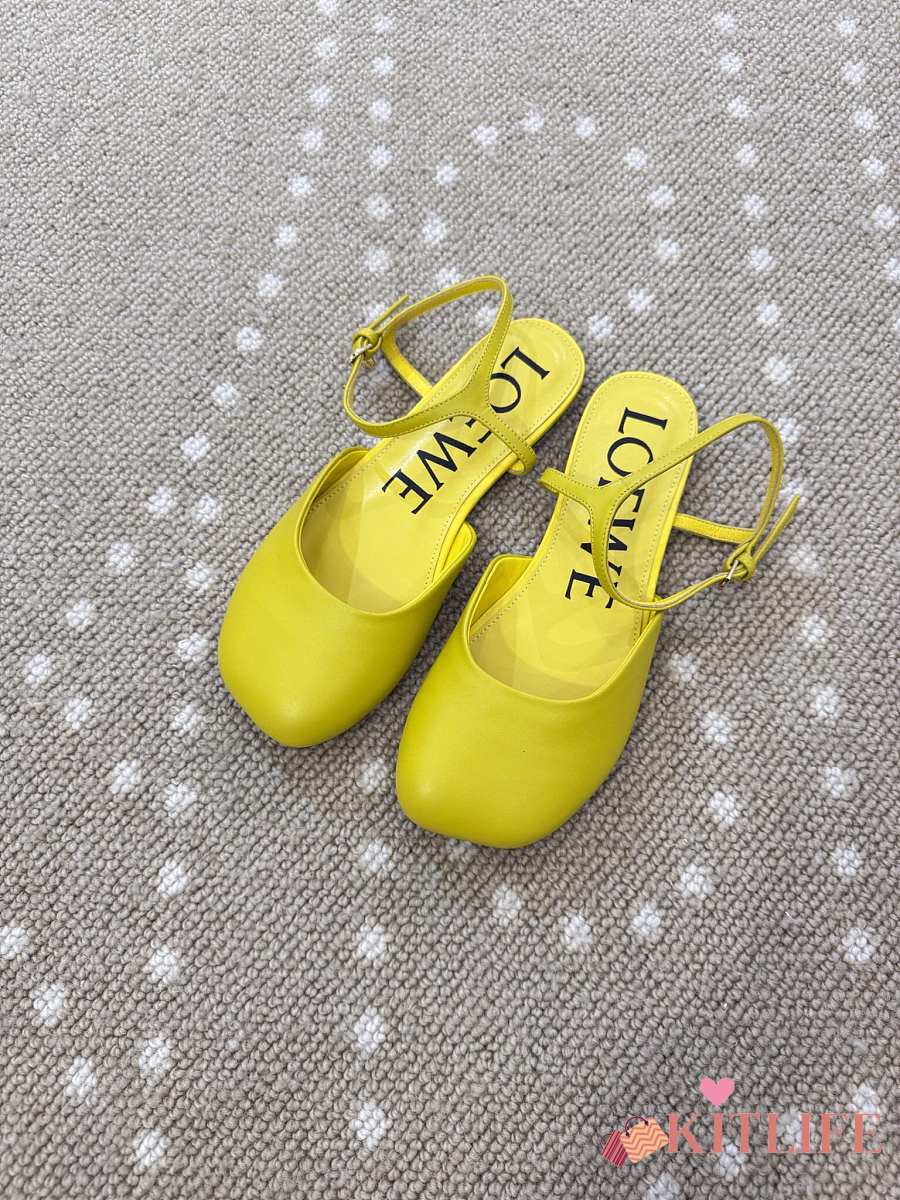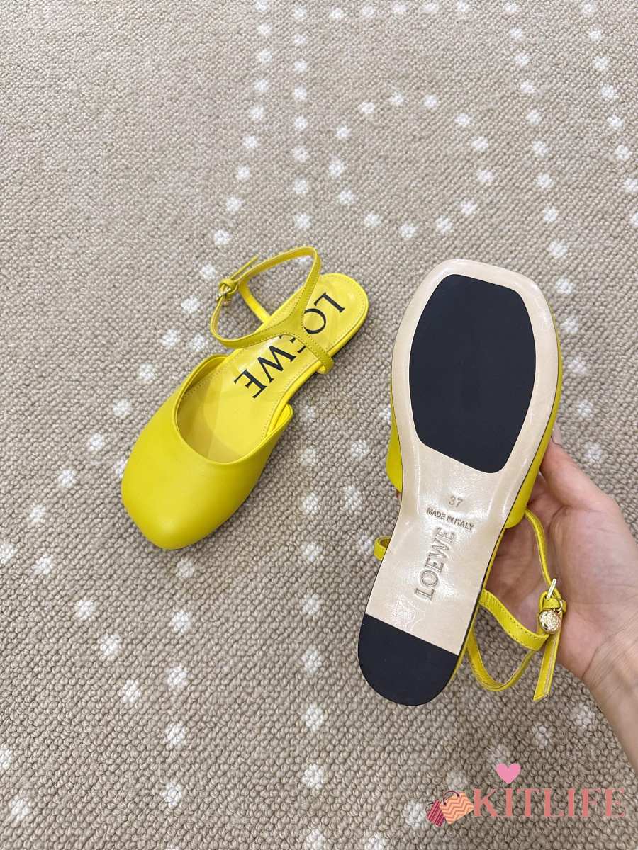 Kitlife Loewe Toy Ankle-strap Yellow Leather Ballerinas Shoes