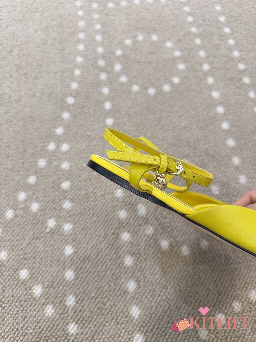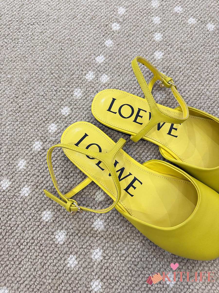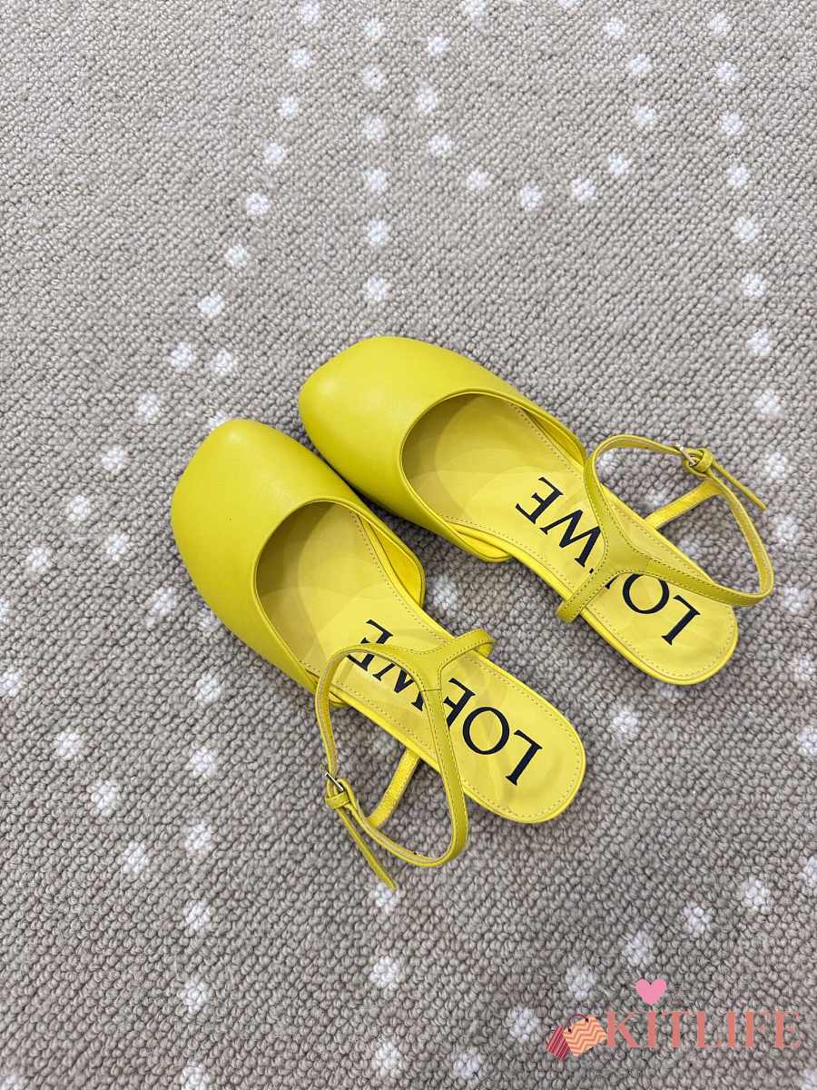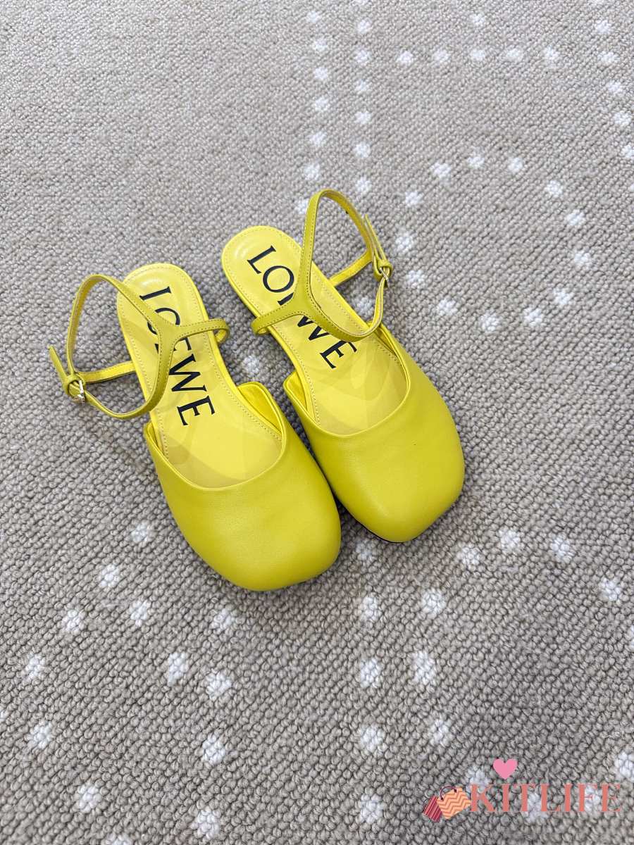Kitlife Loewe Toy Ankle-strap Yellow Leather Ballerinas Shoes