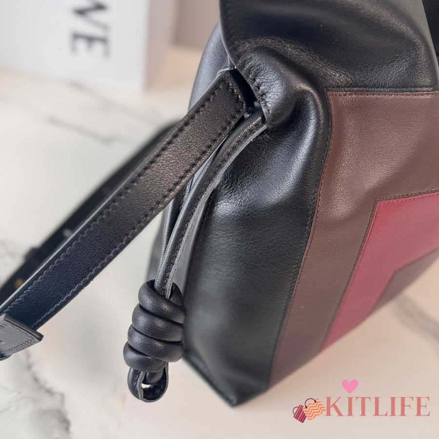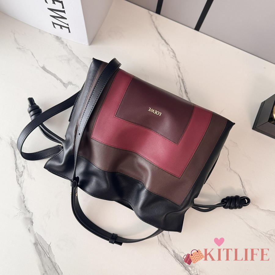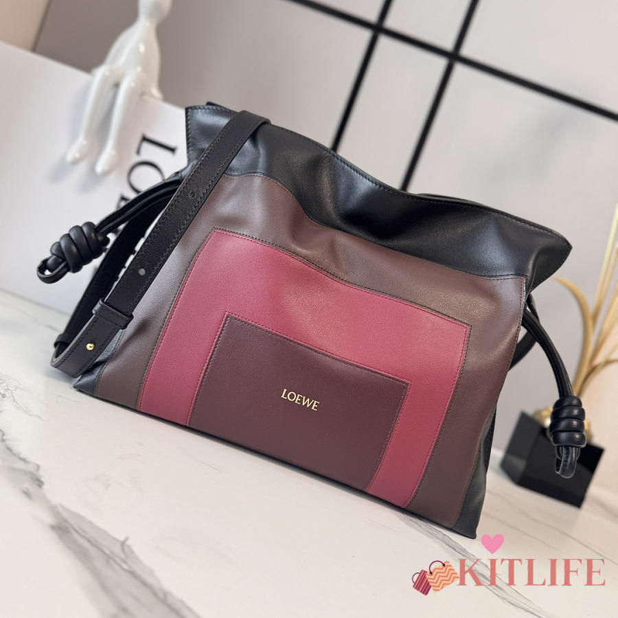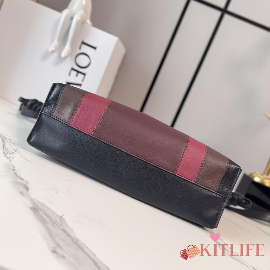 Kitlife Loewe x Albers Flamenco Medium Clutch Bag in Black & Burdundy Nappa Leather 30x24.5x10.5cm