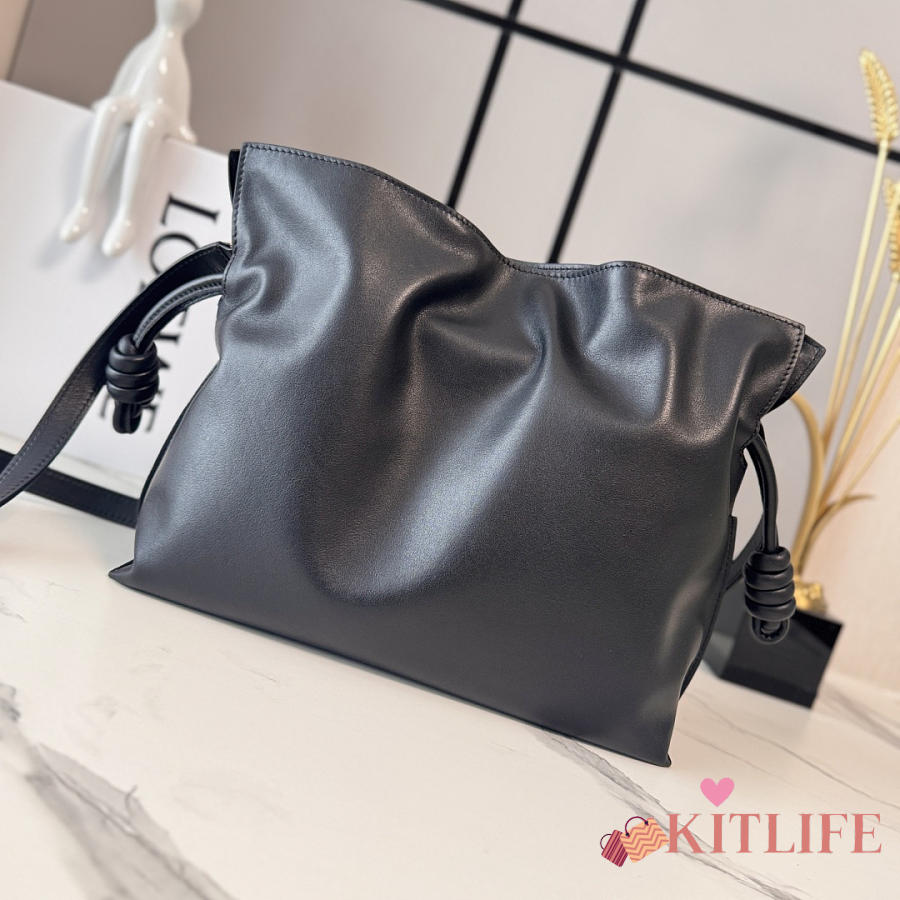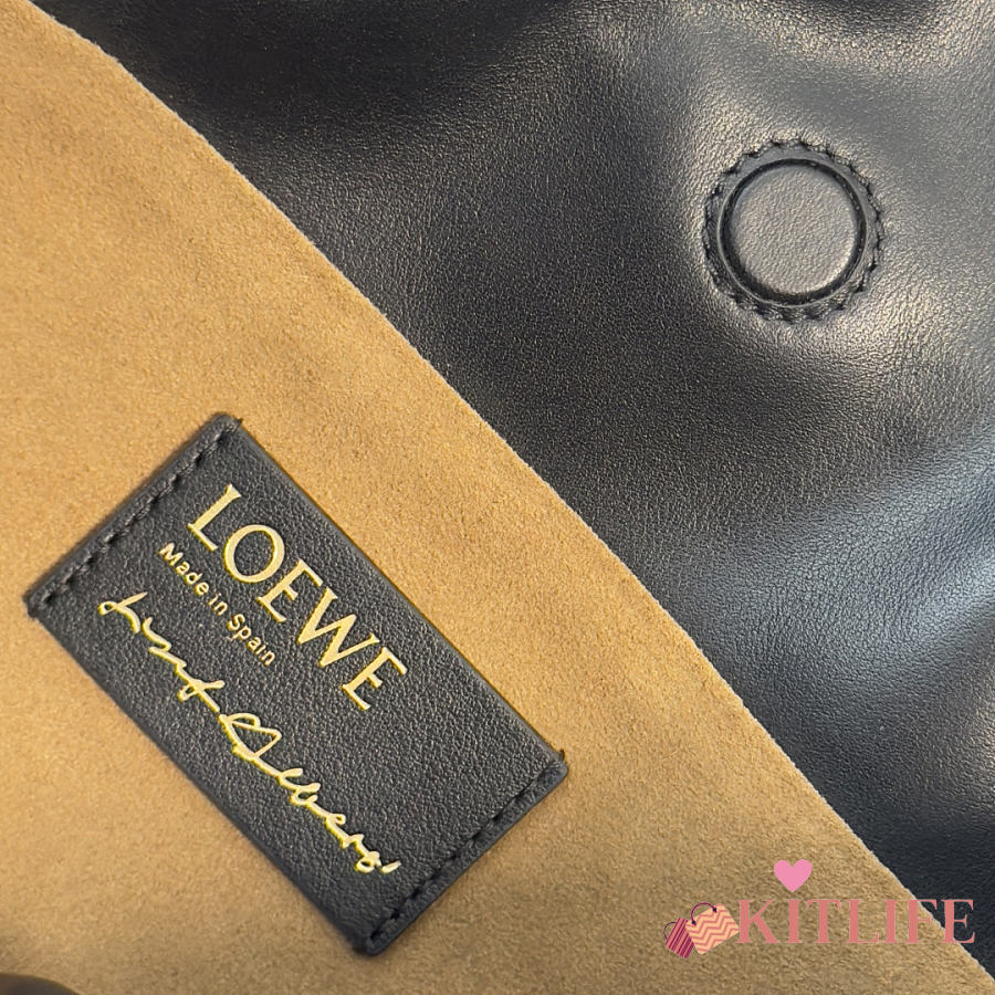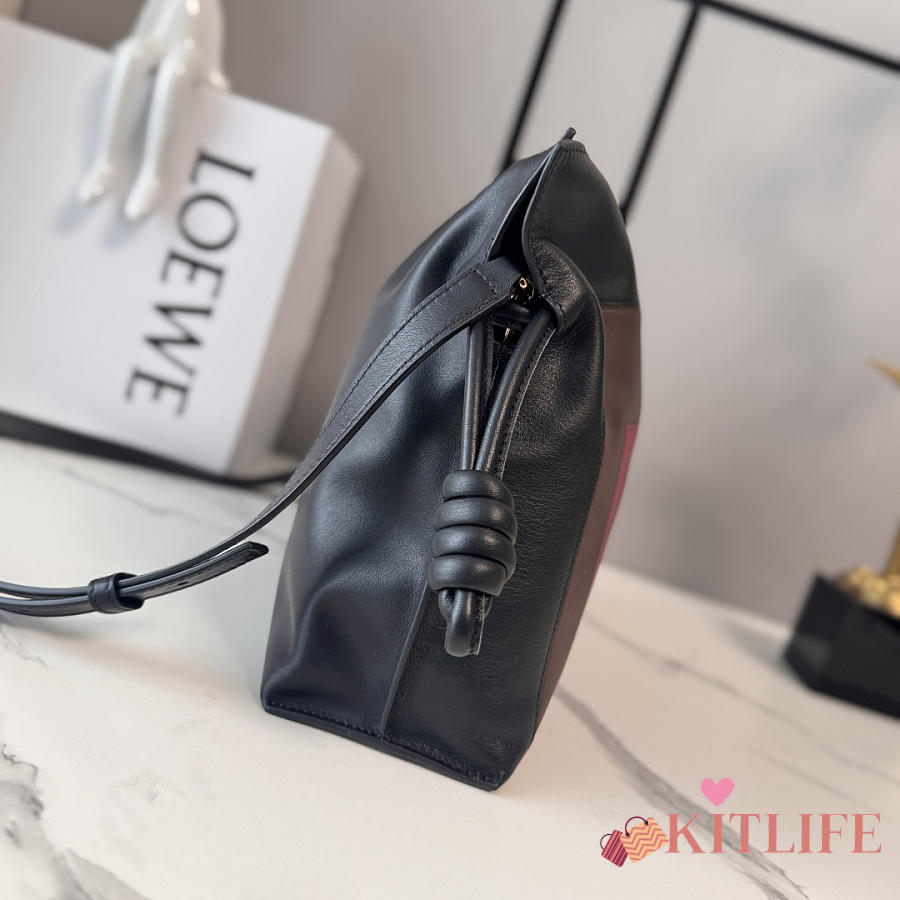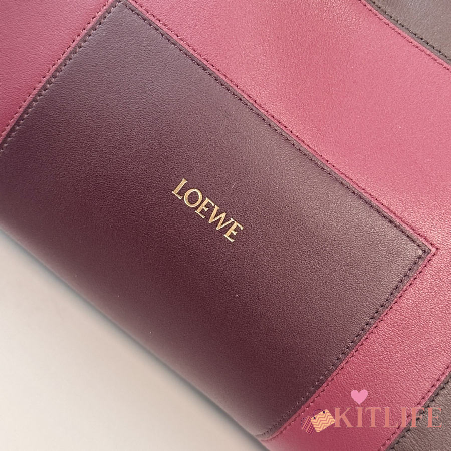 Kitlife Loewe x Albers Flamenco Medium Clutch Bag in Black & Burdundy Nappa Leather 30x24.5x10.5cm