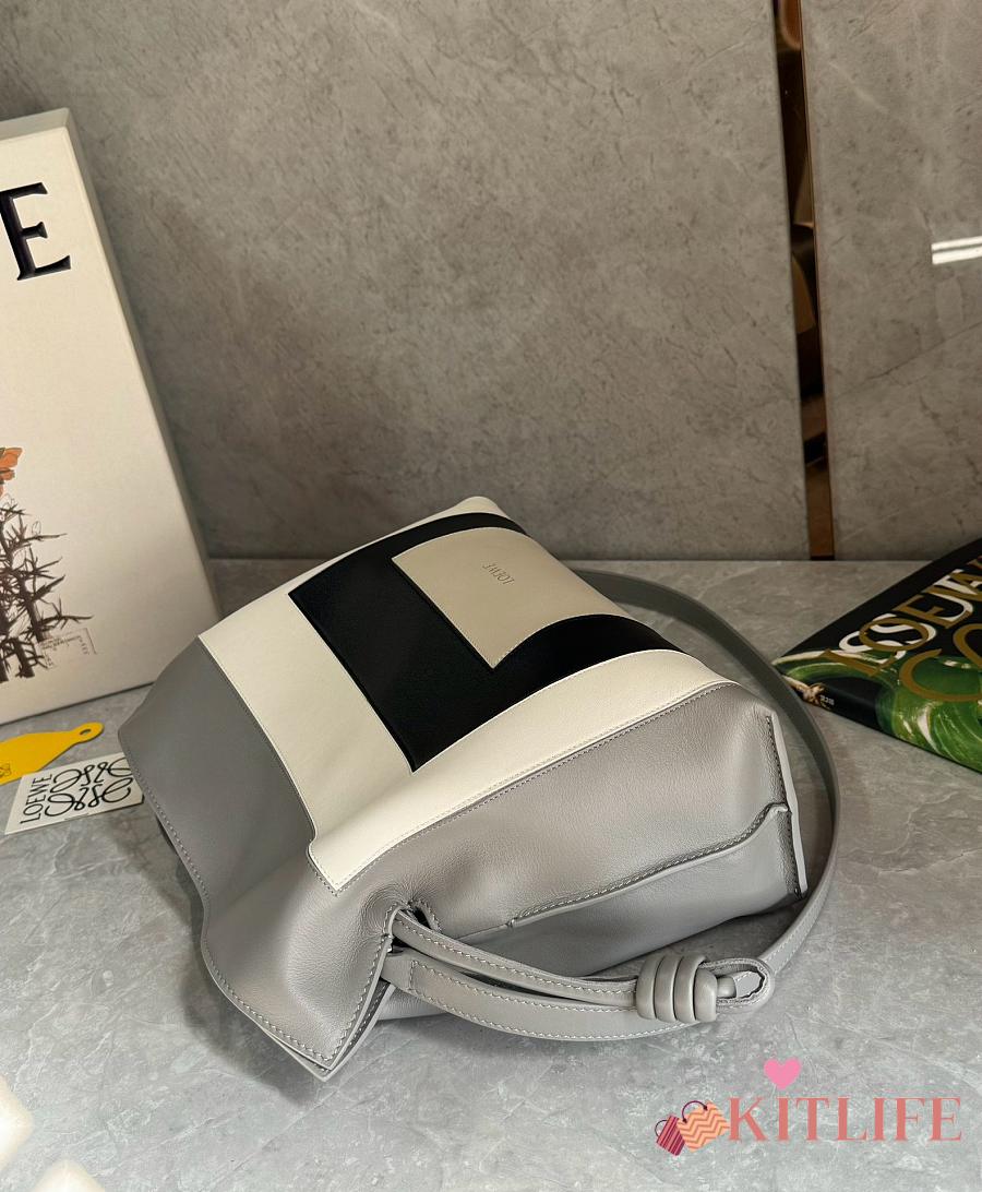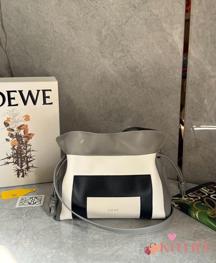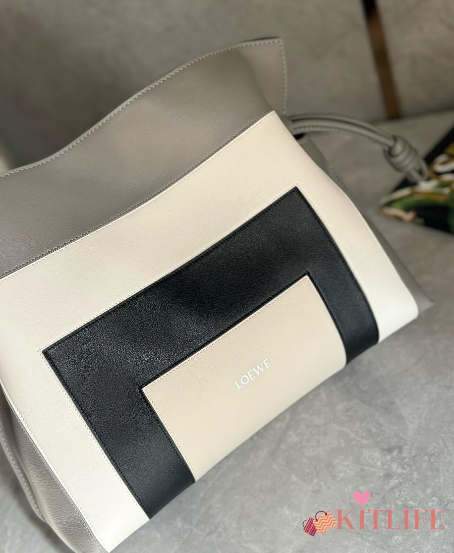 Kitlife Loewe x Albers Flamenco Medium Clutch Bag in White, Black & Grey Nappa Leather 30x24.5x10.5cm