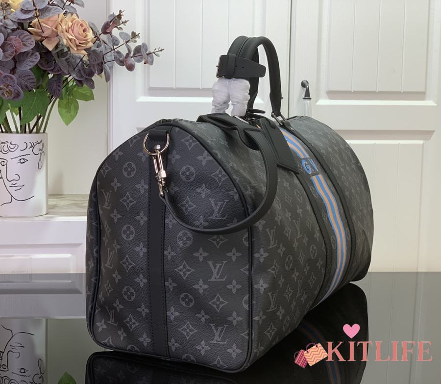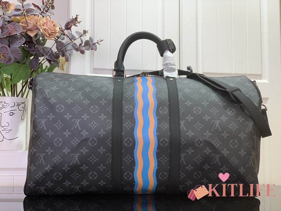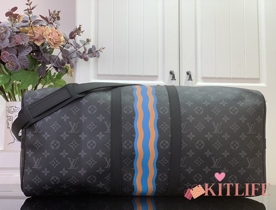 Kitlife Louis Vuitton Bandoulière Keepall 55 Bandoulière Monogram Black & Blue 31x26x55cm