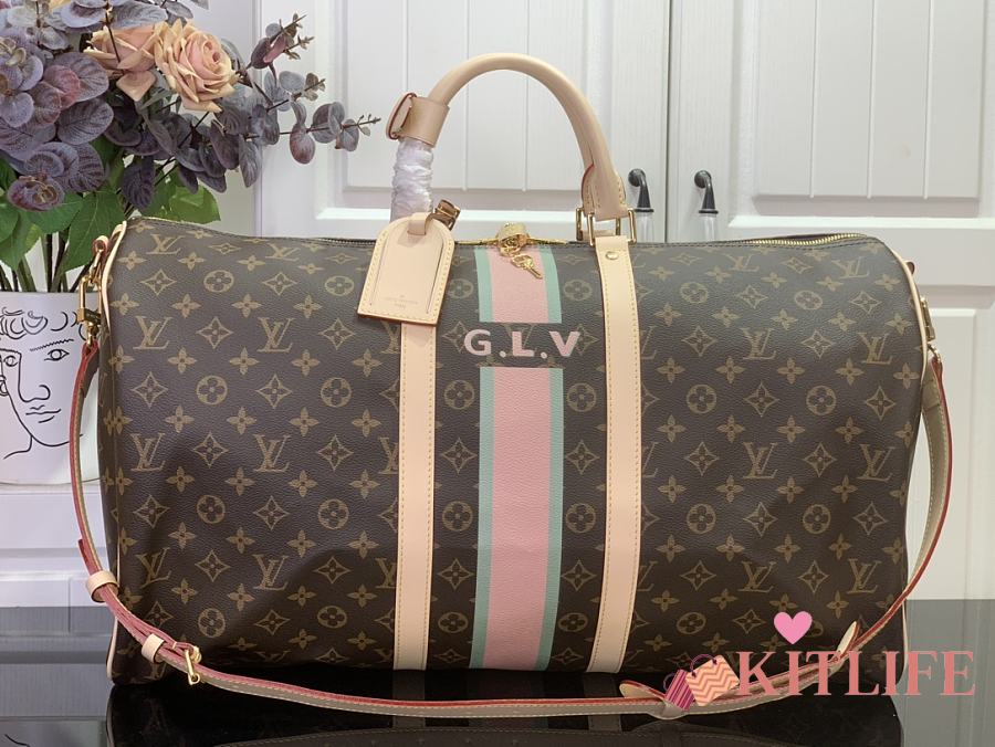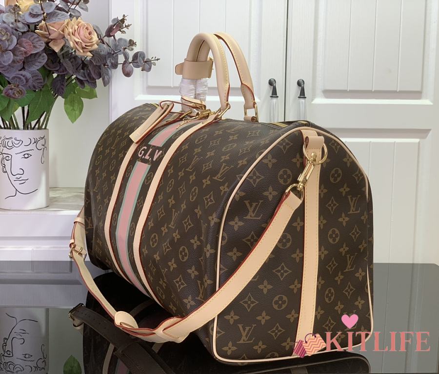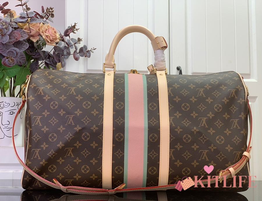 Kitlife Louis Vuitton Bandoulière Keepall 55 Bandoulière Monogram Black & Pink 31x26x55cm