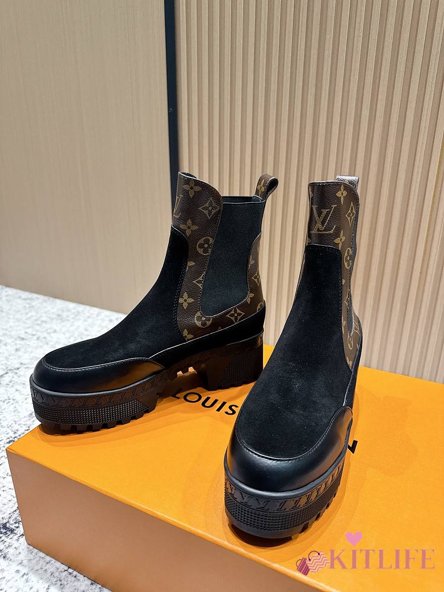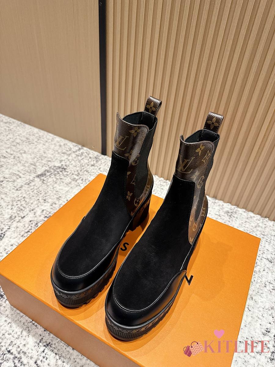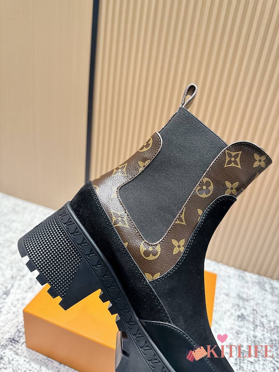 Kitlife Louis Vuitton Beaubourg Chelsea Ankle Boot Black Suede