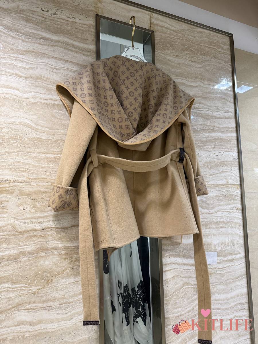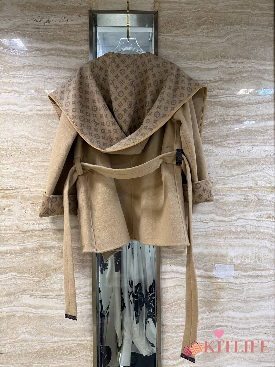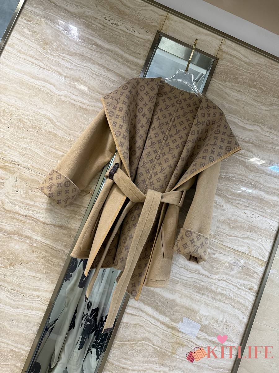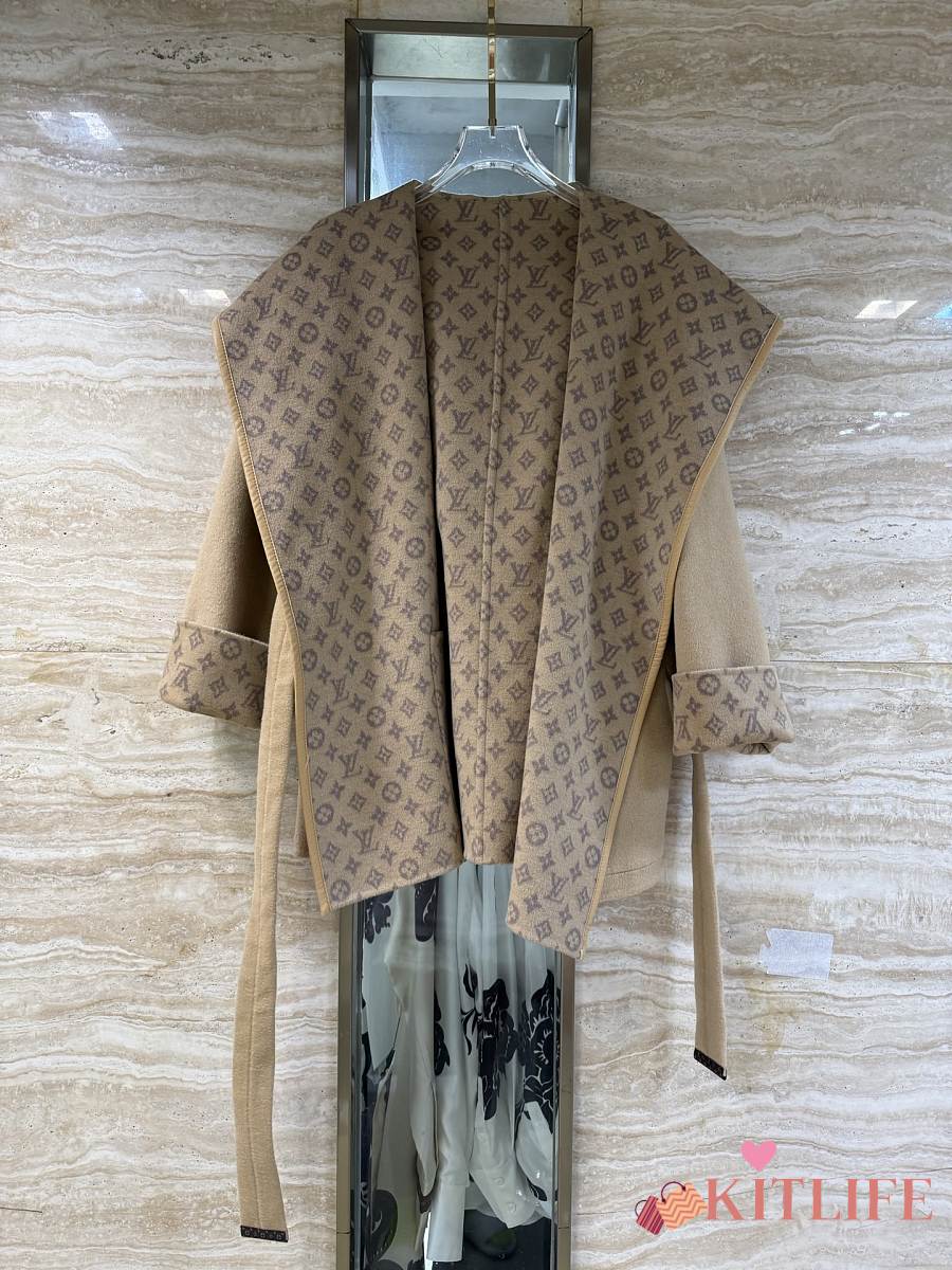 Kitlife Louis Vuitton Belted Short Wrap Pea Coat Beige
