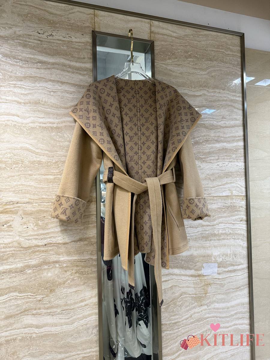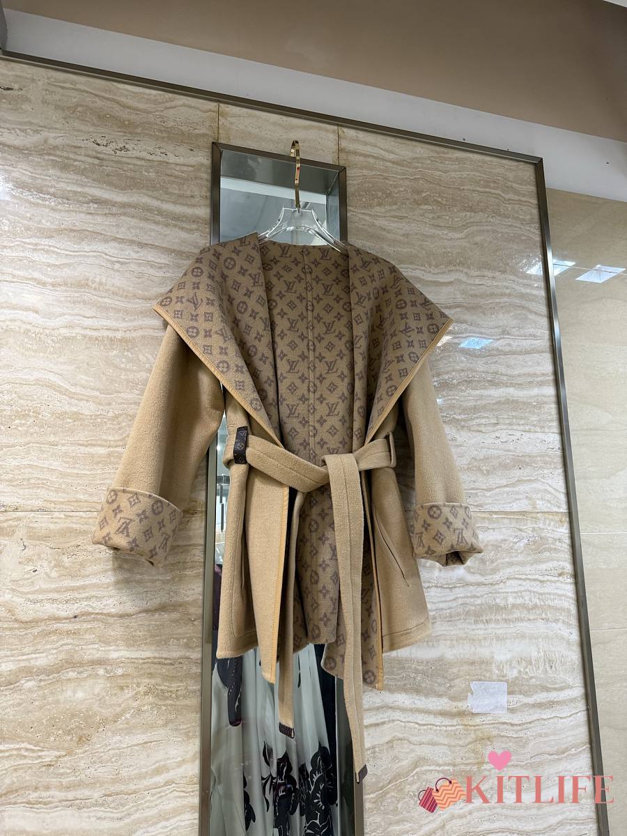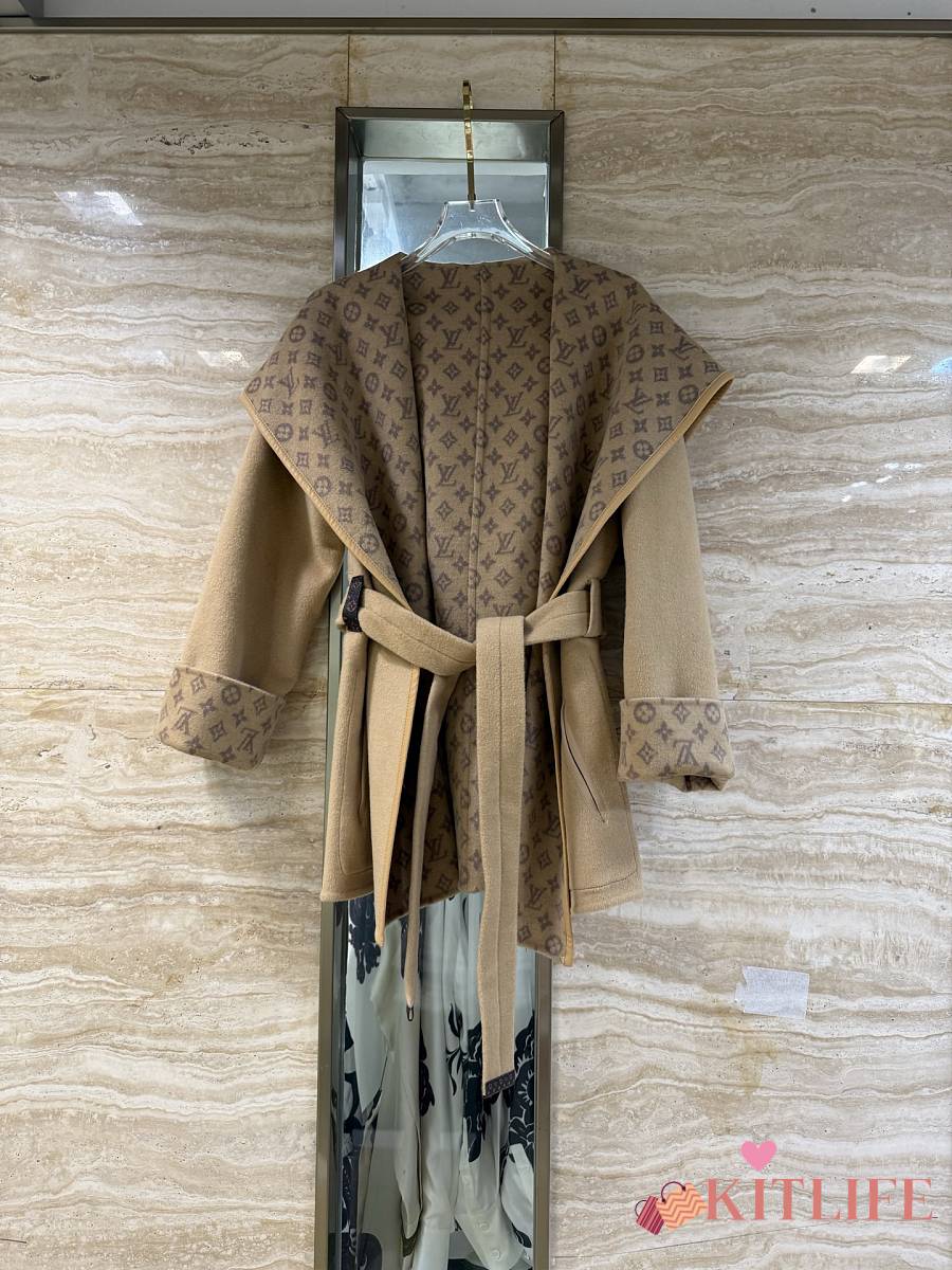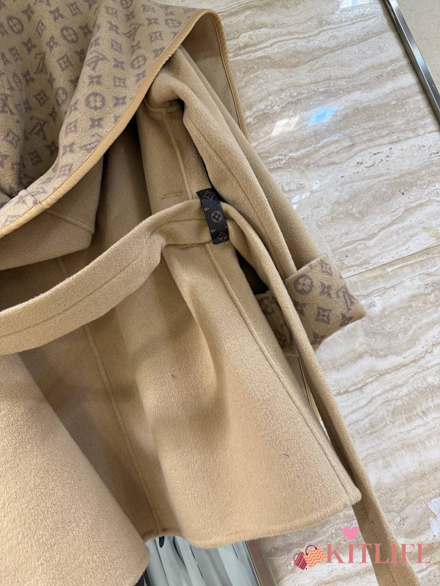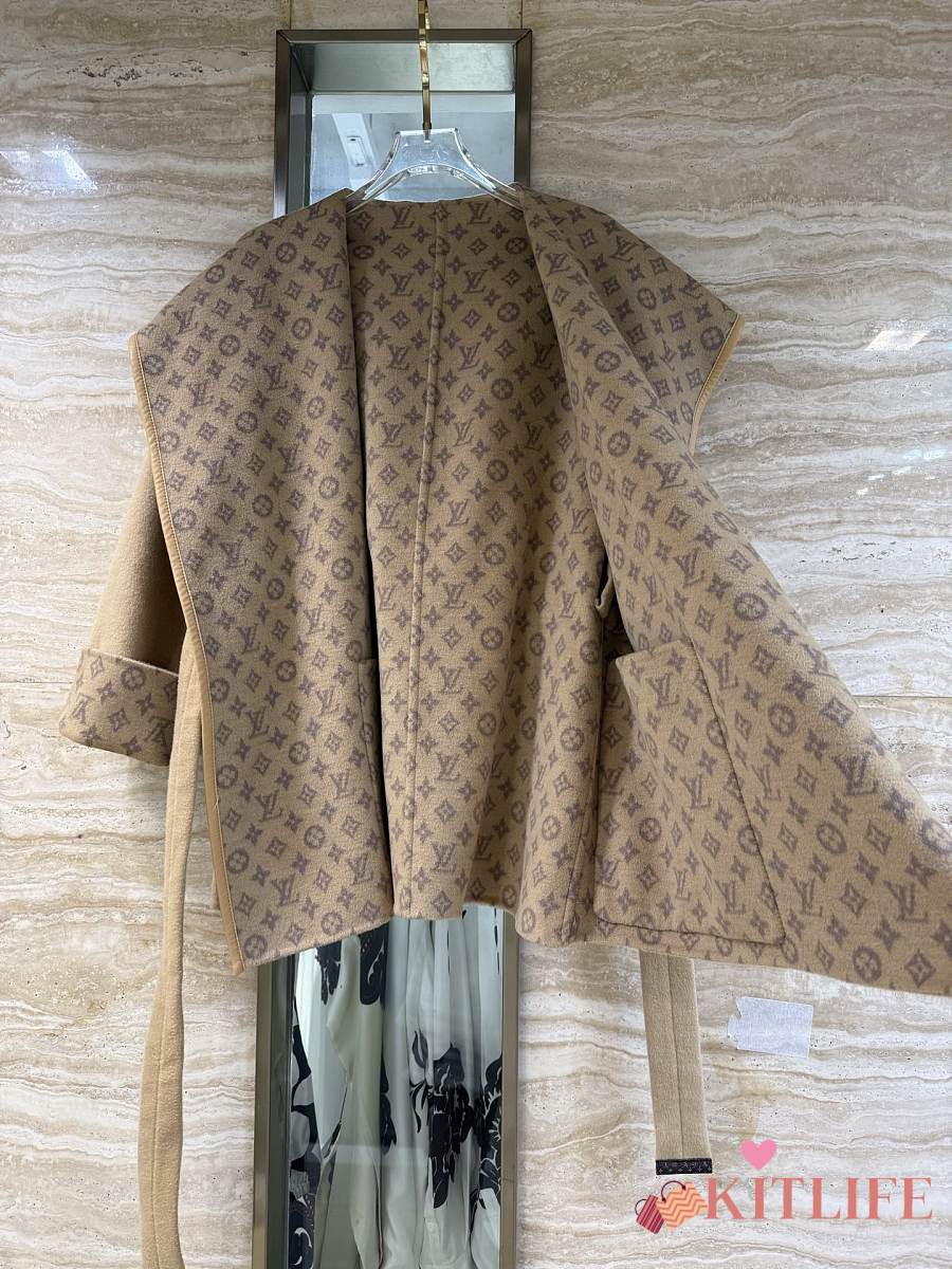 Kitlife Louis Vuitton Belted Short Wrap Pea Coat Beige