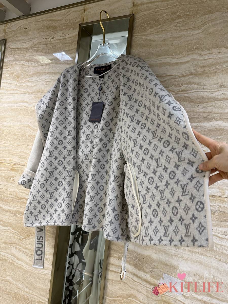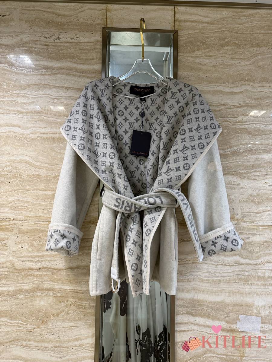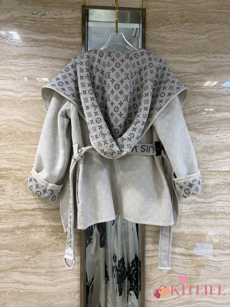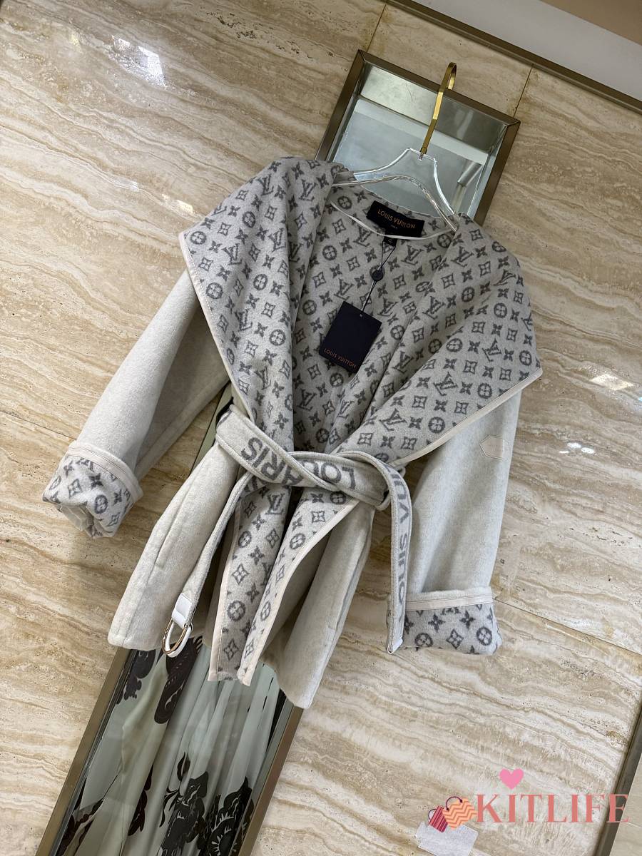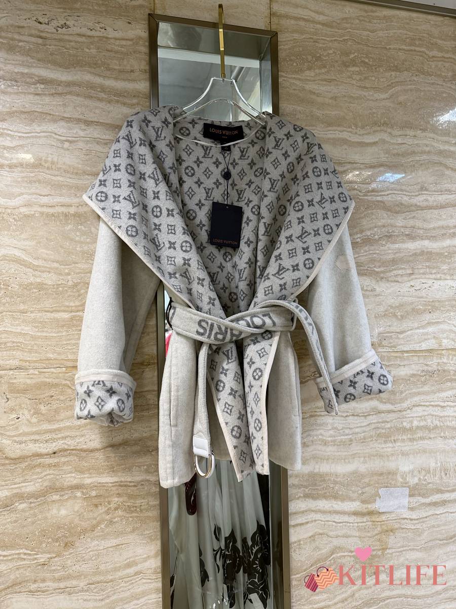 Kitlife Louis Vuitton Belted Short Wrap Pea Coat Grey