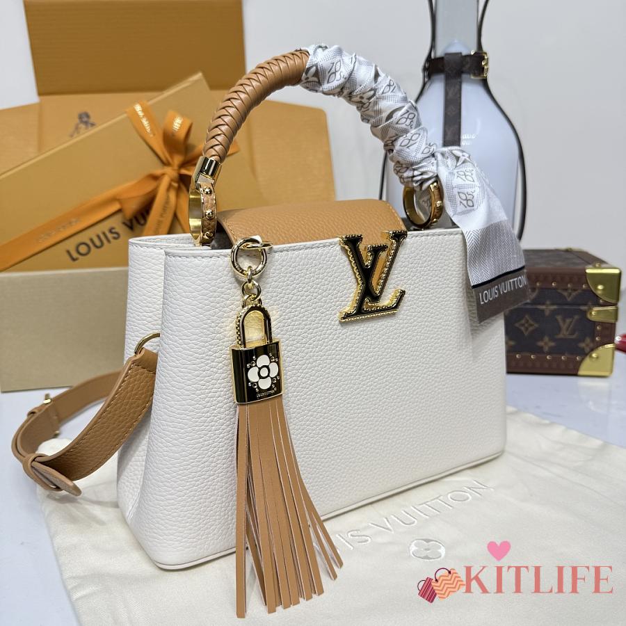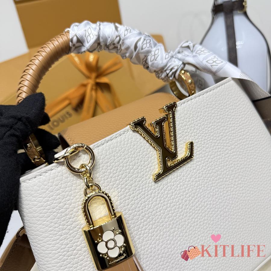 Kitlife Louis Vuitton Capucines BB Bag Cream & Arizona Beige M25466 27x17.3x9cm