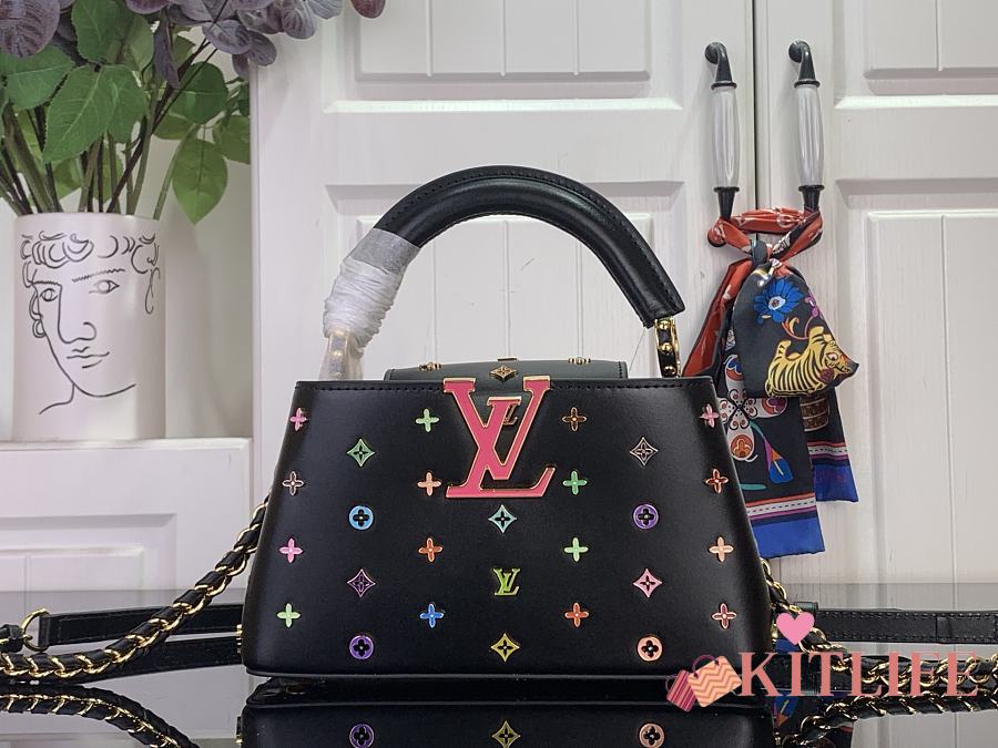 Kitlife Louis Vuitton Capucines East-West Mini Bag Black Multicolor M27636 22x12x8cm