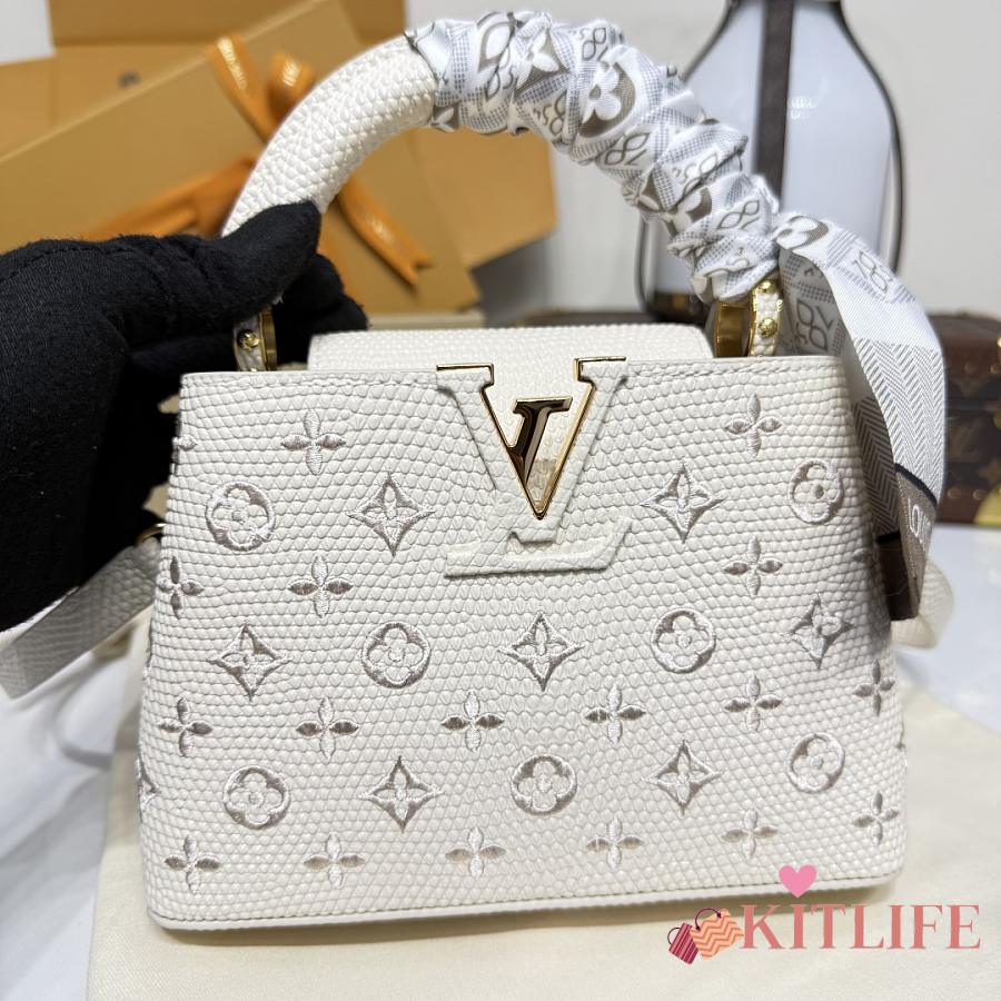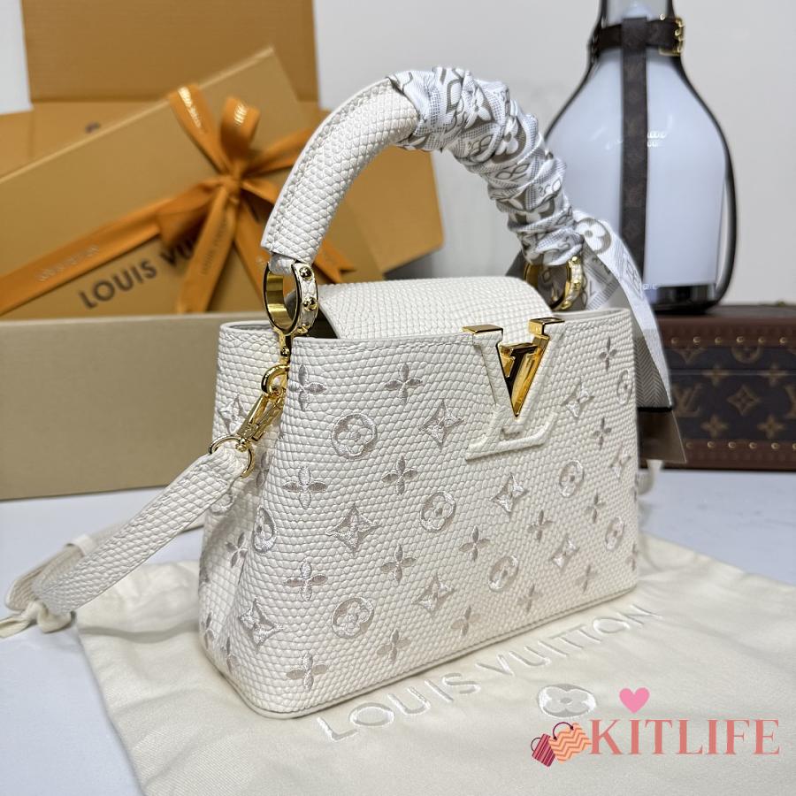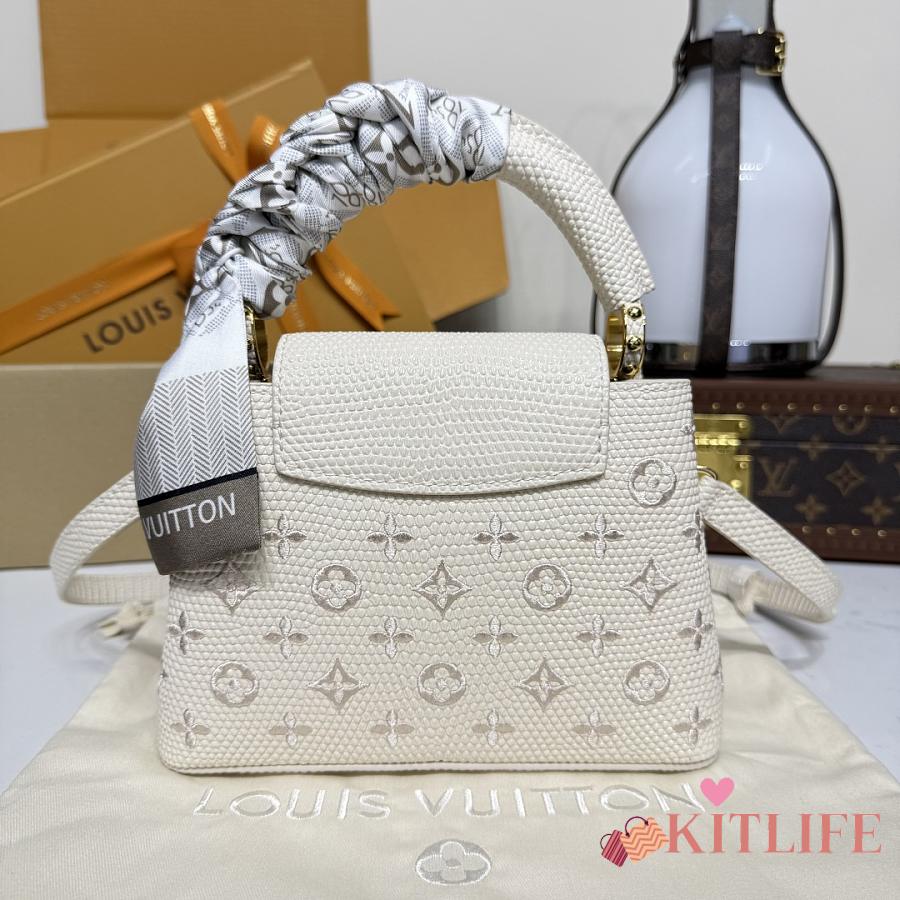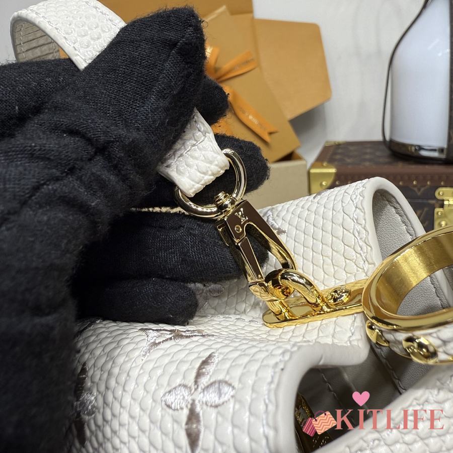 Kitlife Louis Vuitton Capucines Mini Handbag White Lizard Embroidered M13053 21x813cm