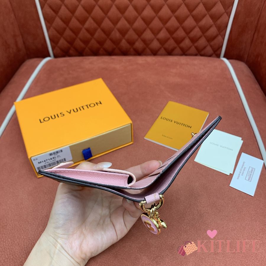 Kitlife Louis Vuitton Charms Pocket Wallet Monogram Canvas Pink M14718 10x9x2.5cm