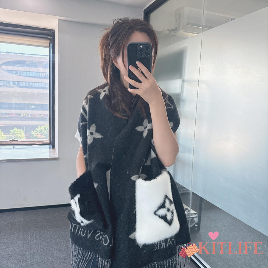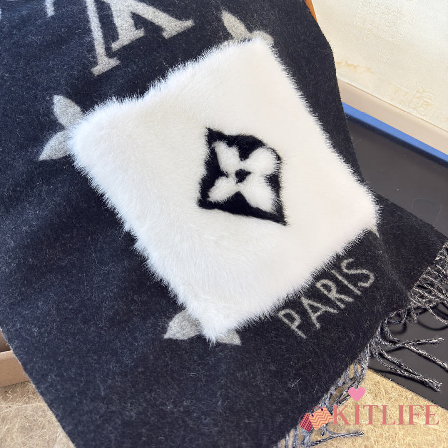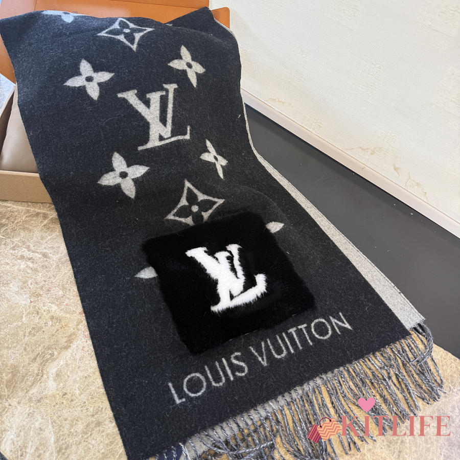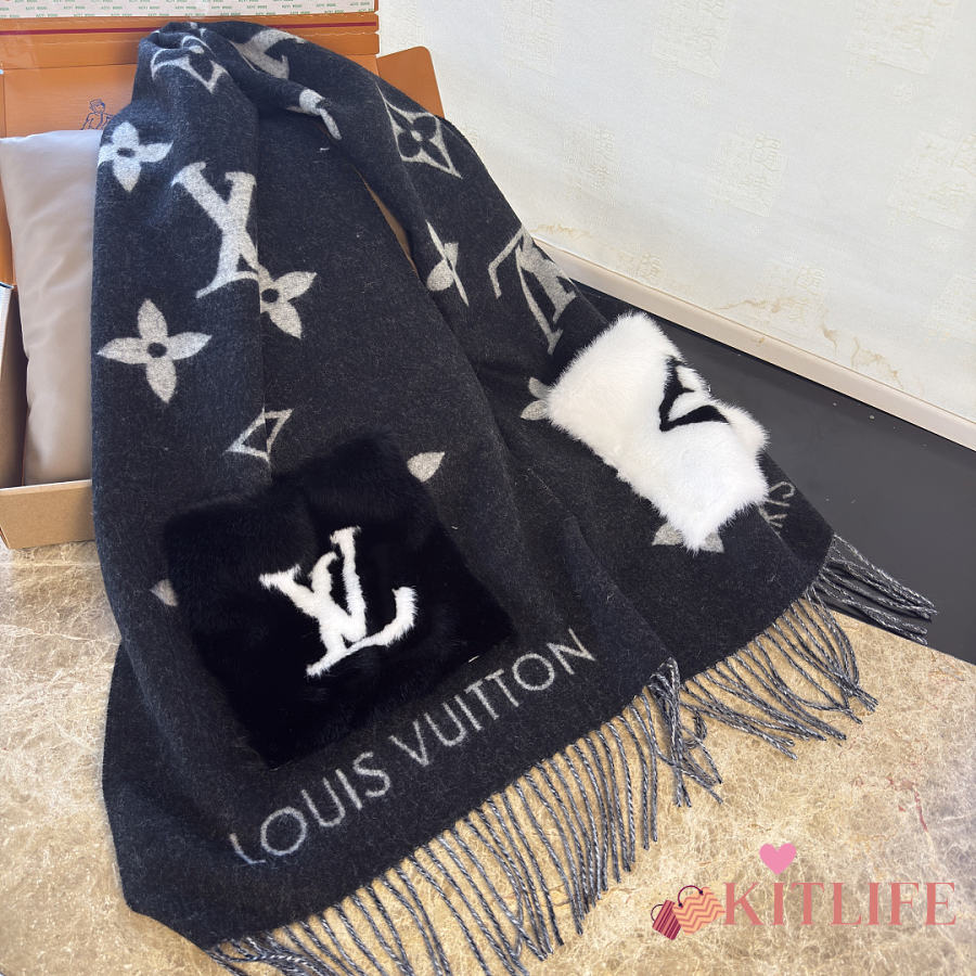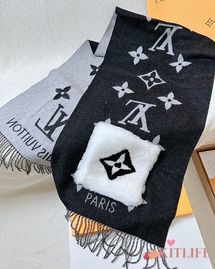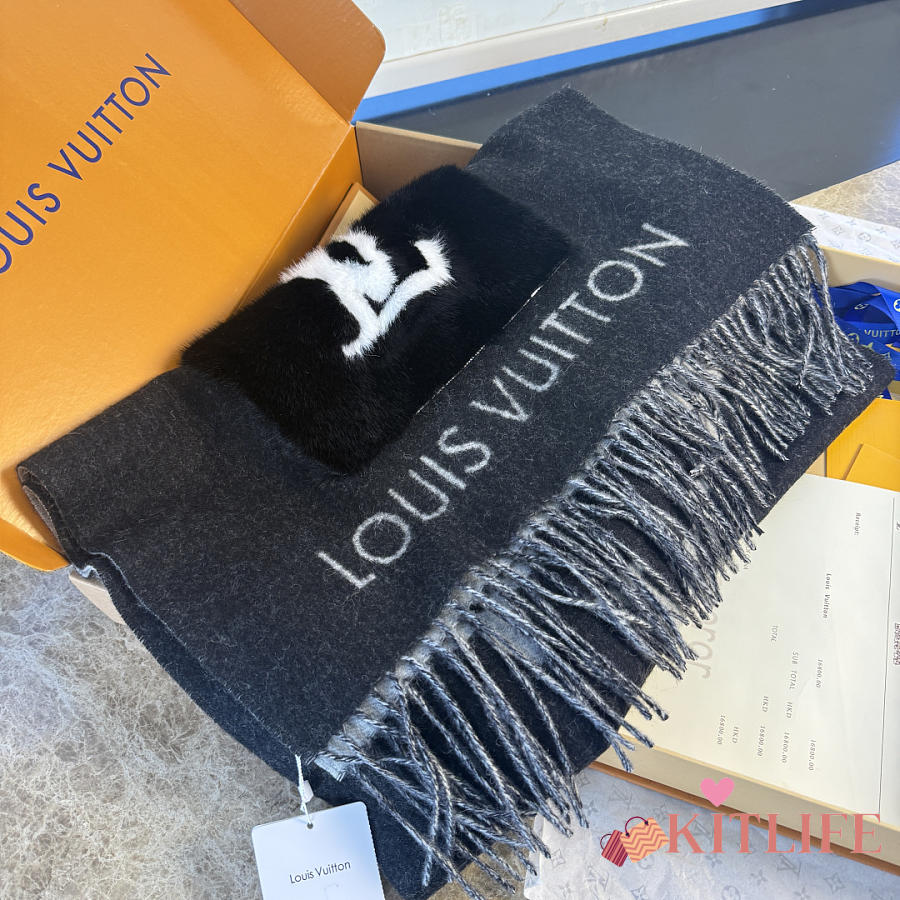 Kitlife Louis Vuitton Cold Reykjavik Scarf Black 190x46cm