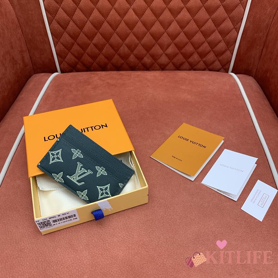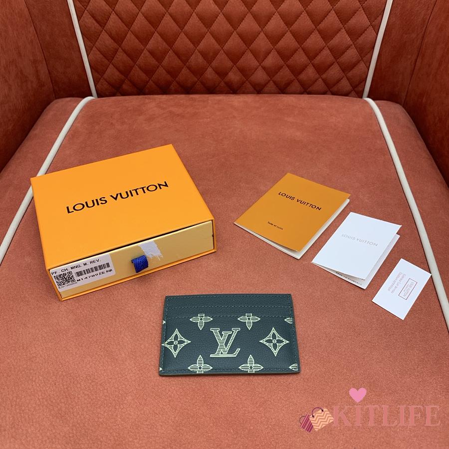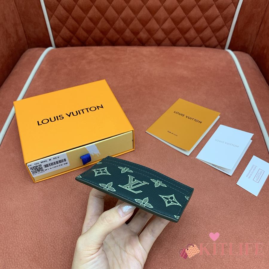 Kitlife Louis Vuitton Double Card Holder Green Monogram Shadow Leather M14789 11x7.5x1.5cm