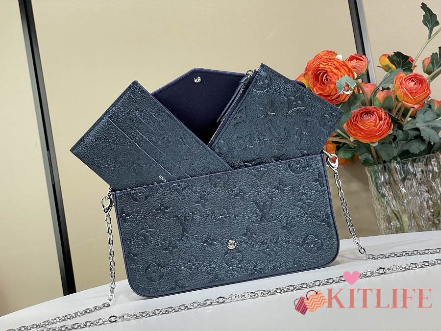 Kitlife Louis Vuitton Félicie Pochette Bag Dark Blue Monogram Empreinte M27048 21x12x3cm