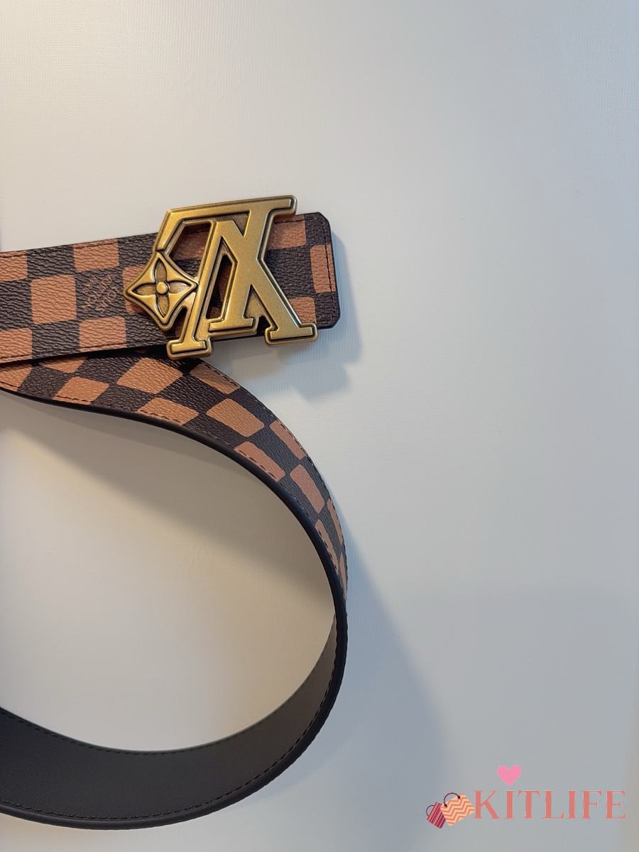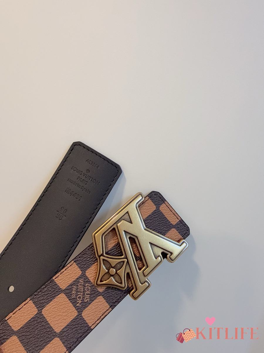 Kitlife Louis Vuitton Flower Damier Phriendship Reversible Belt Brown With Gold Buckle 40mm