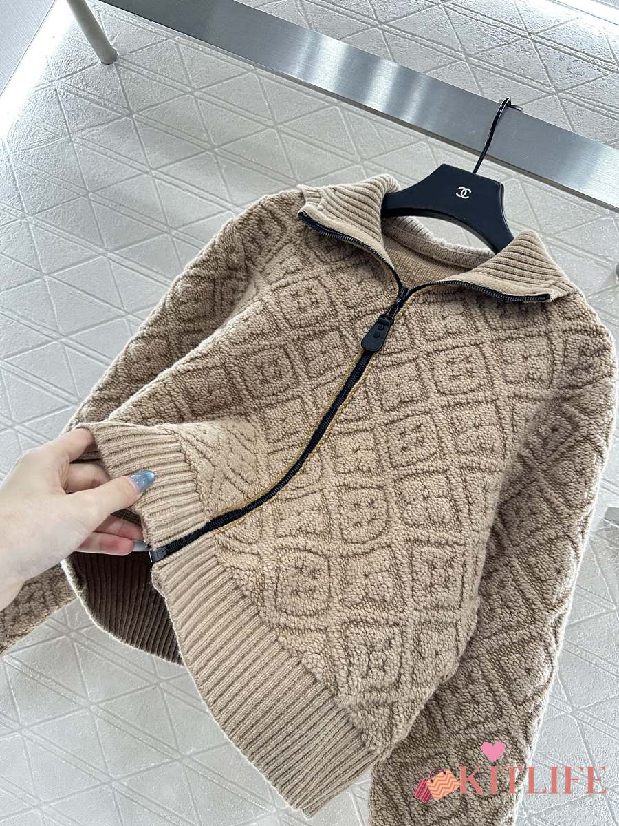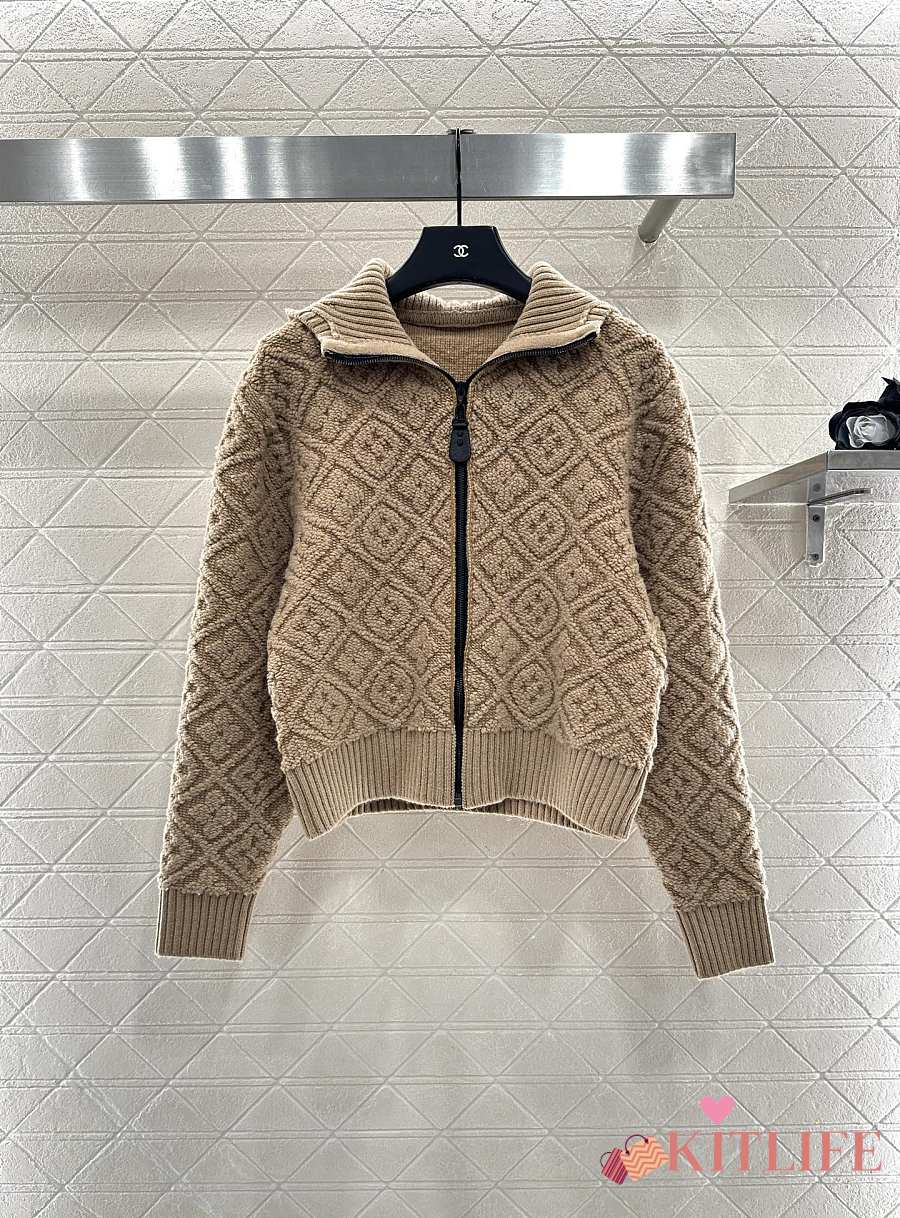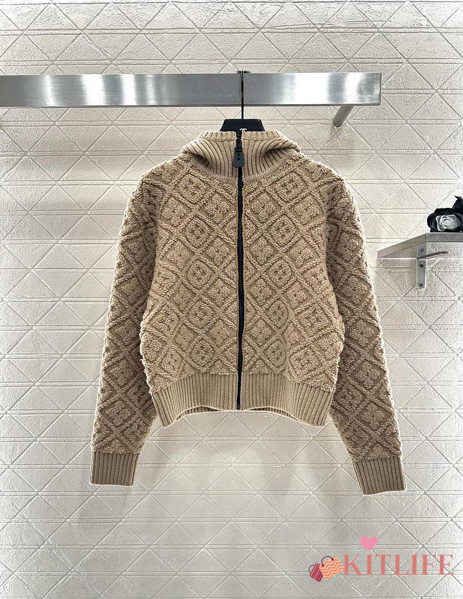 Kitlife Louis Vuitton Jacquard Knit Zip-Up Hooded Jacket Beige