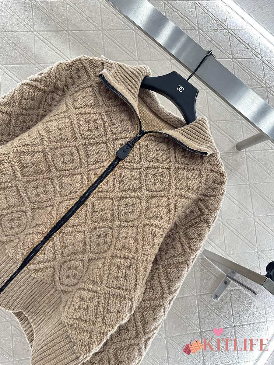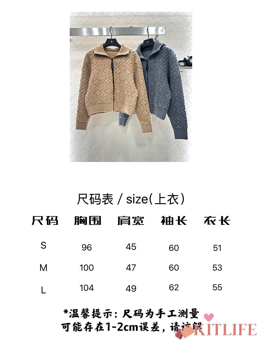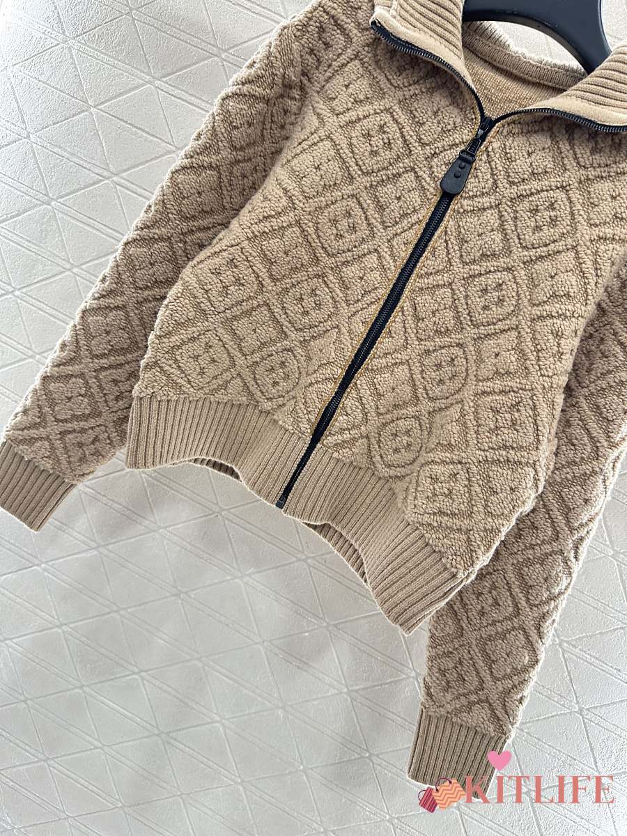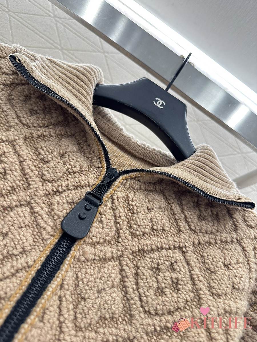 Kitlife Louis Vuitton Jacquard Knit Zip-Up Hooded Jacket Beige