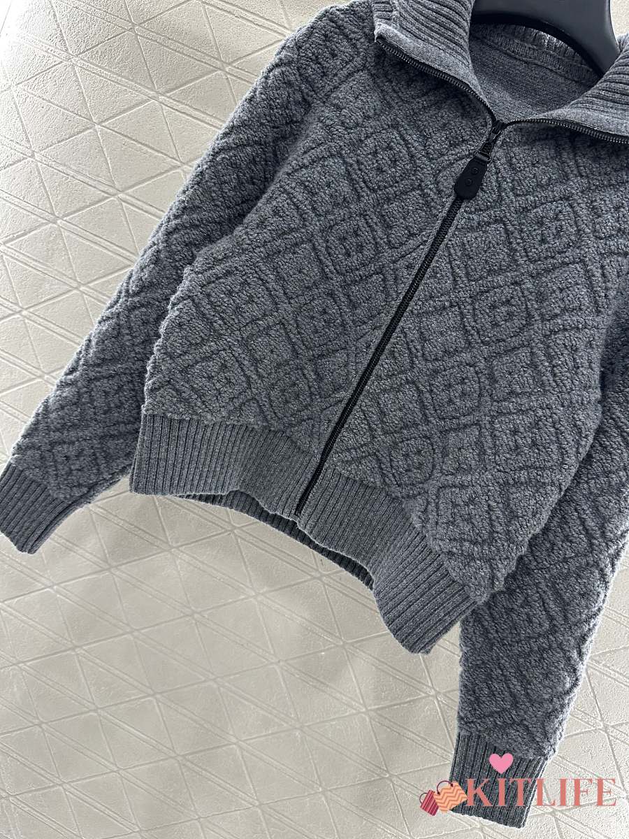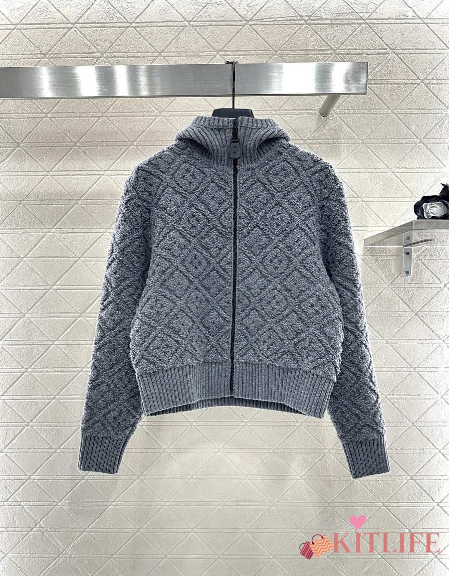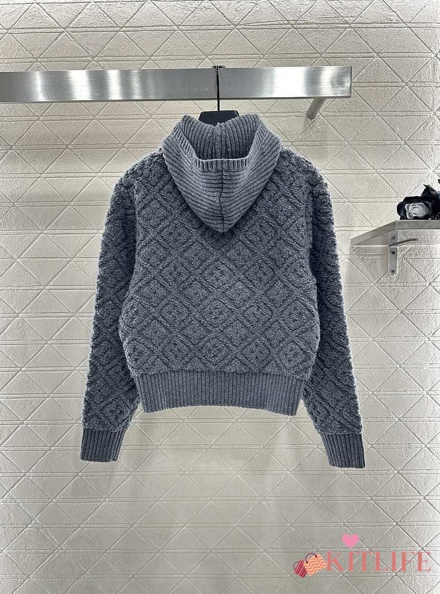 Kitlife Louis Vuitton Jacquard Knit Zip-Up Hooded Jacket Grey