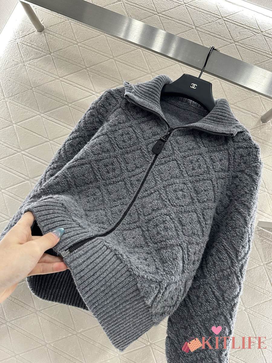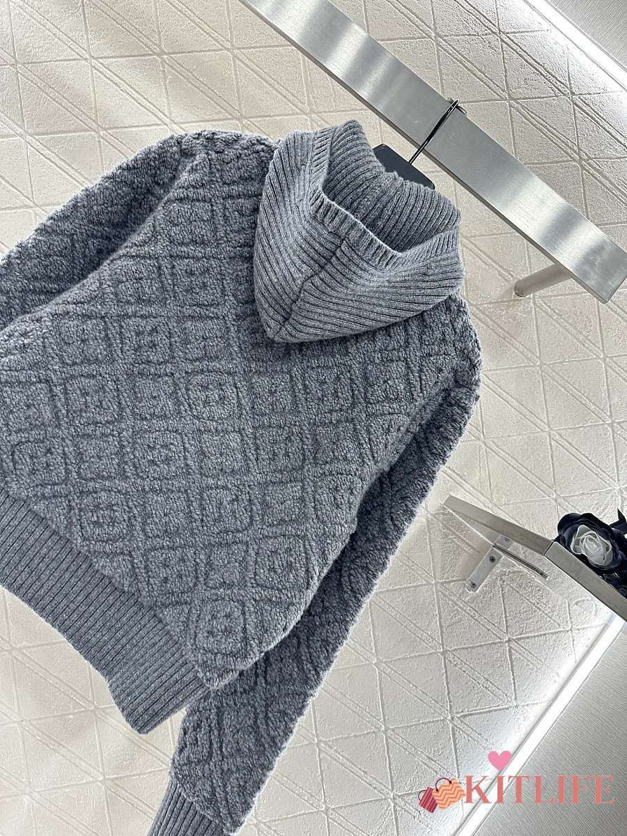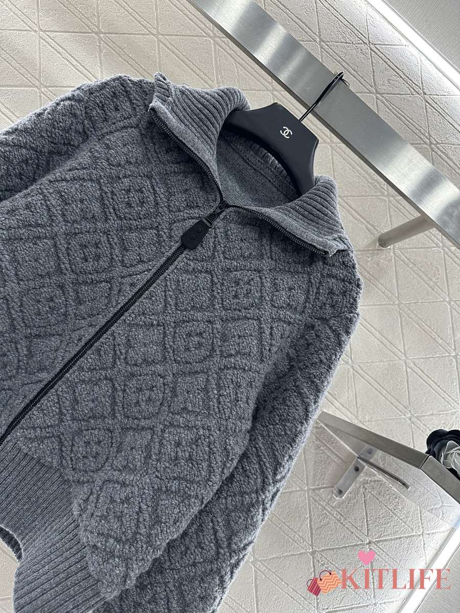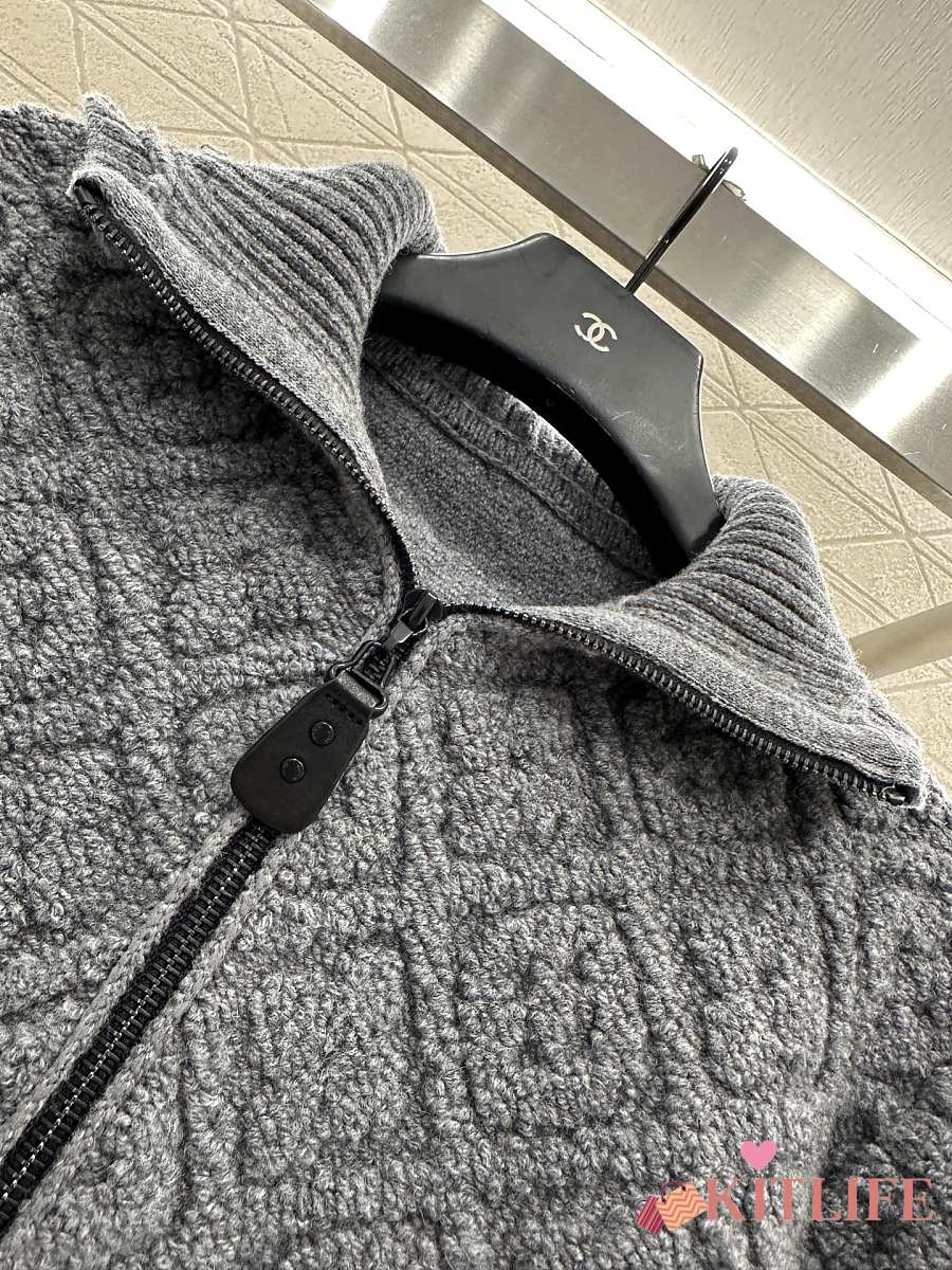 Kitlife Louis Vuitton Jacquard Knit Zip-Up Hooded Jacket Grey