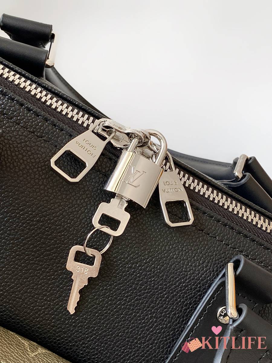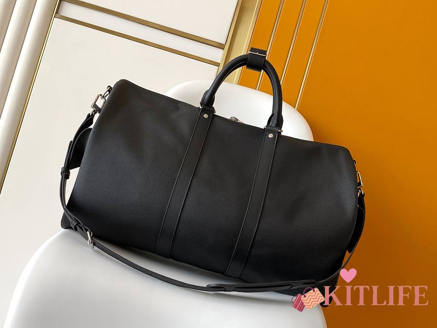 Kitlife Louis Vuitton Keepall Bandoulière 50 Bag Black with Green Trim M12690 29x23x50cm