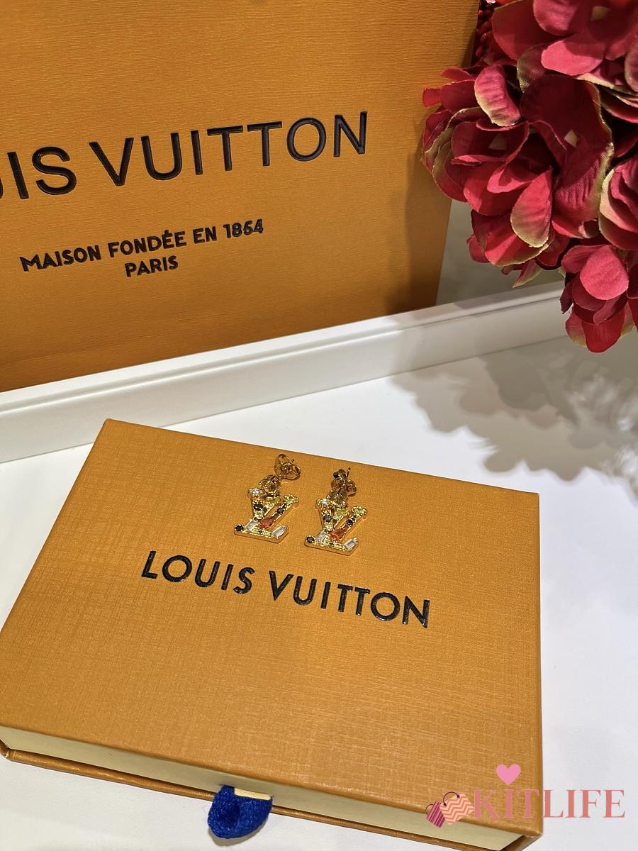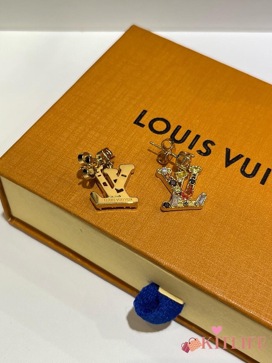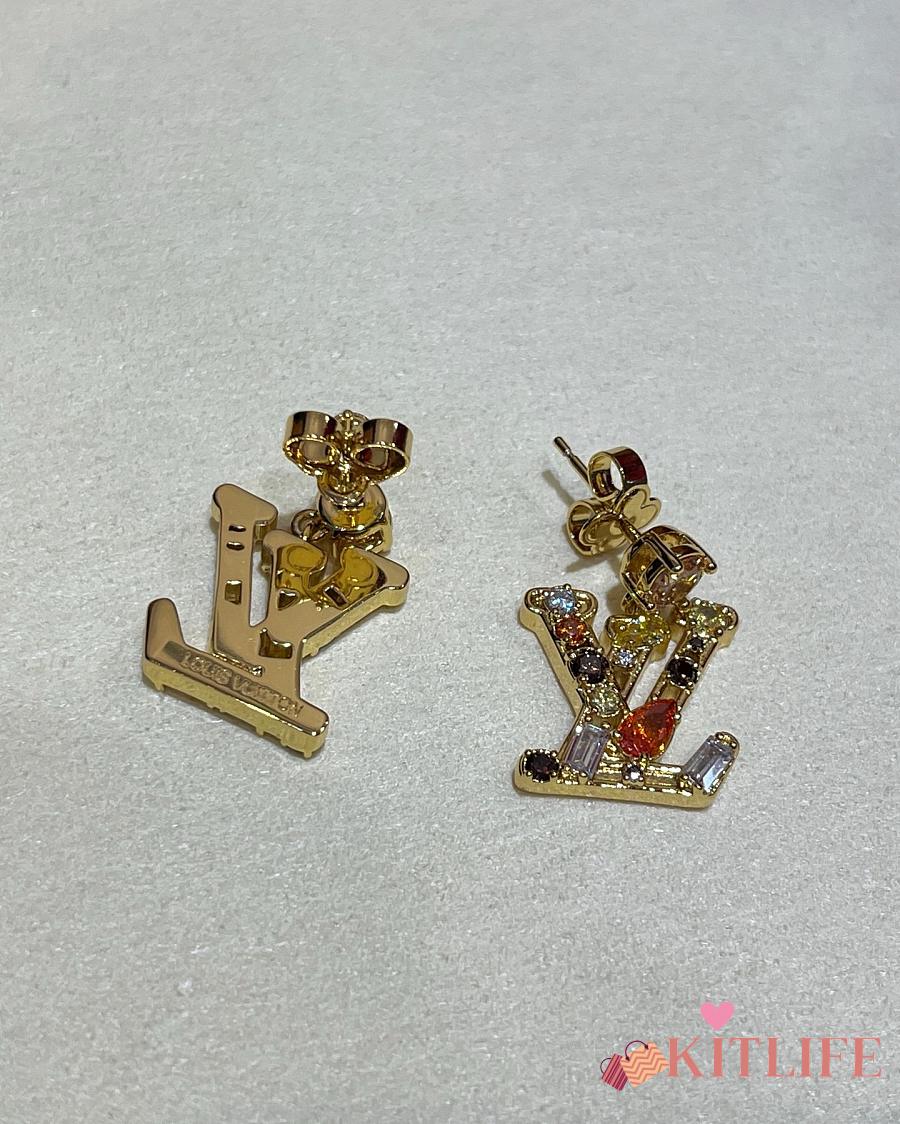 Kitlife Louis Vuitton Lady LV Colored Crystal Letter Earrings