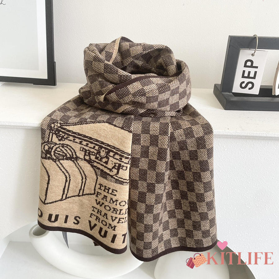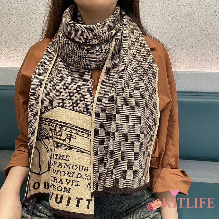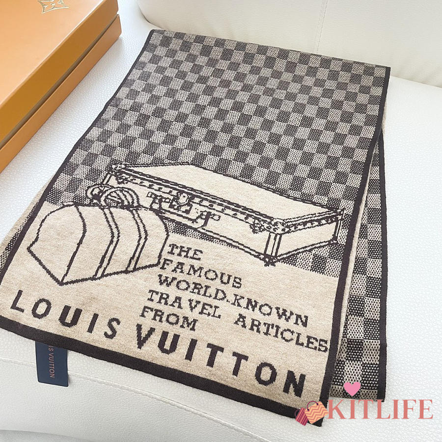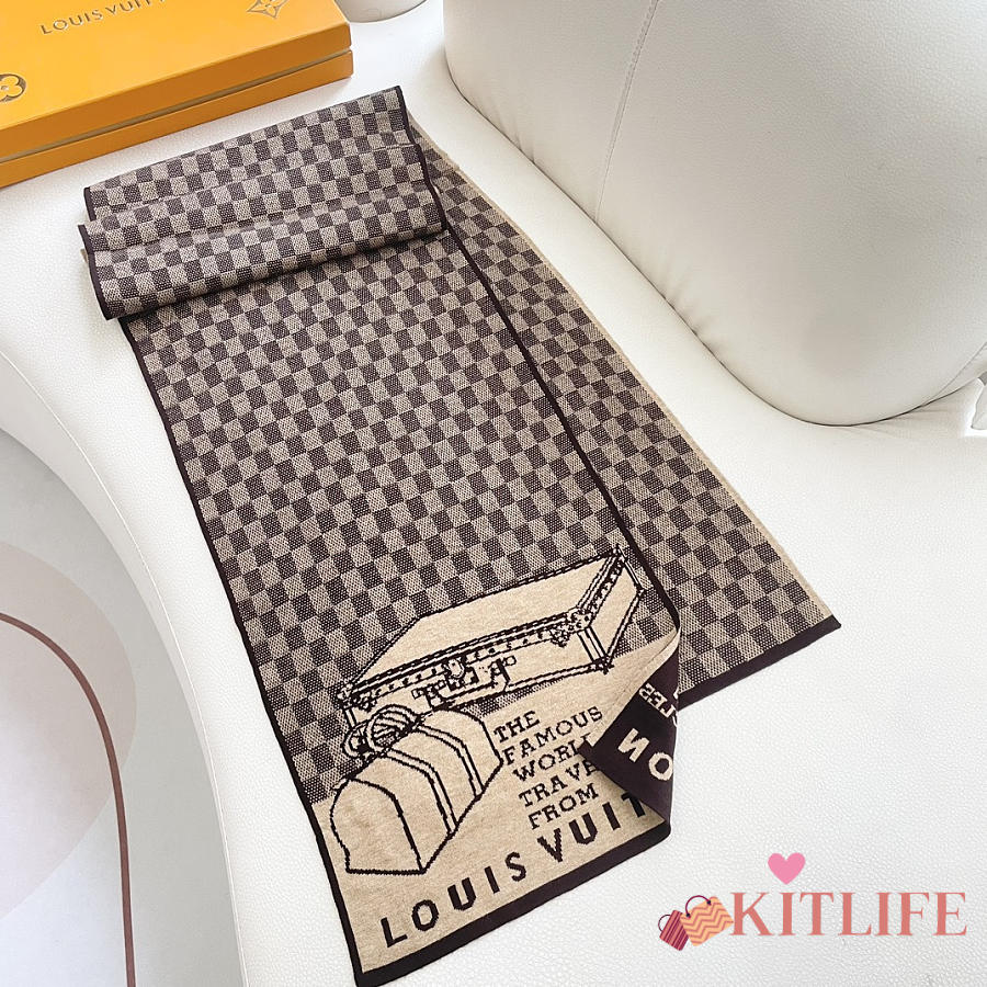 Kitlife Louis Vuitton LV Smash Scarf Brown & Beige 180x32cm