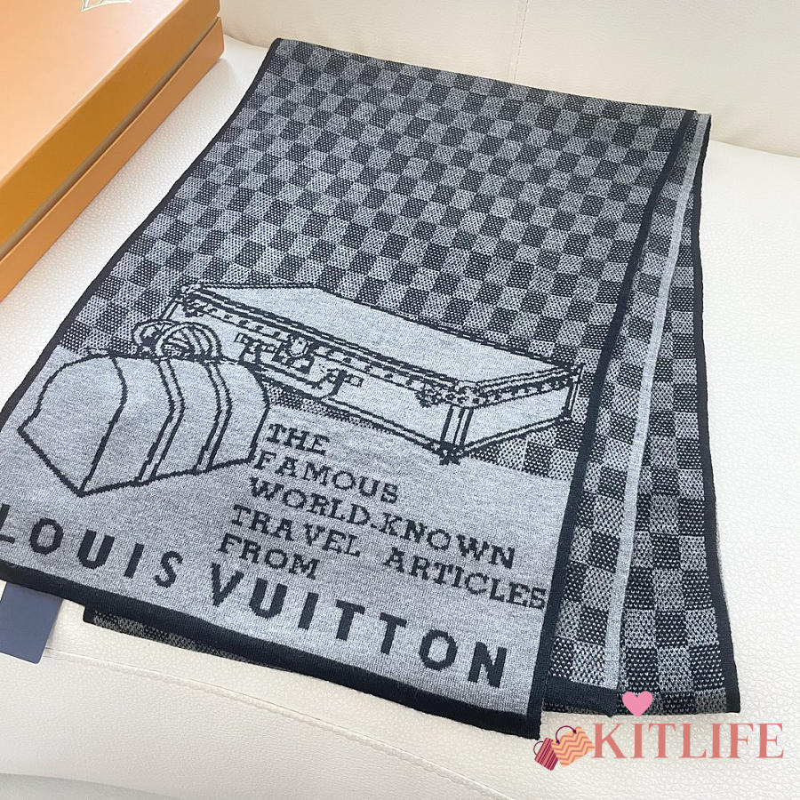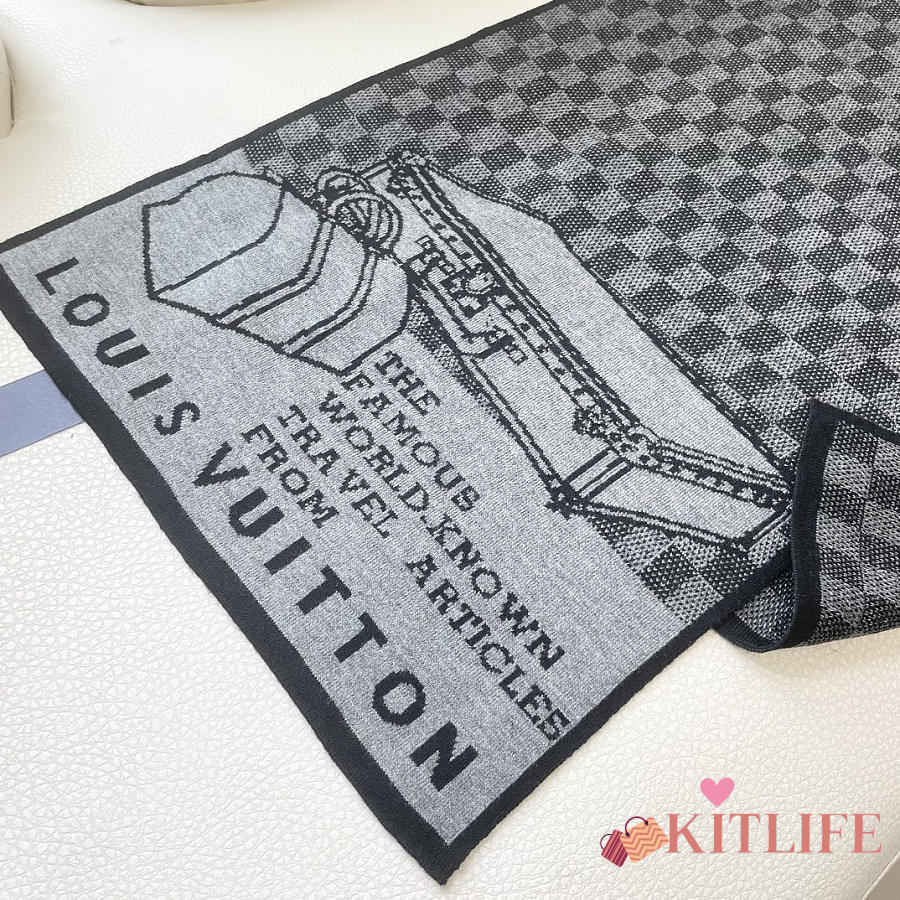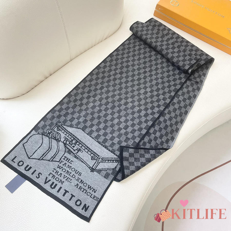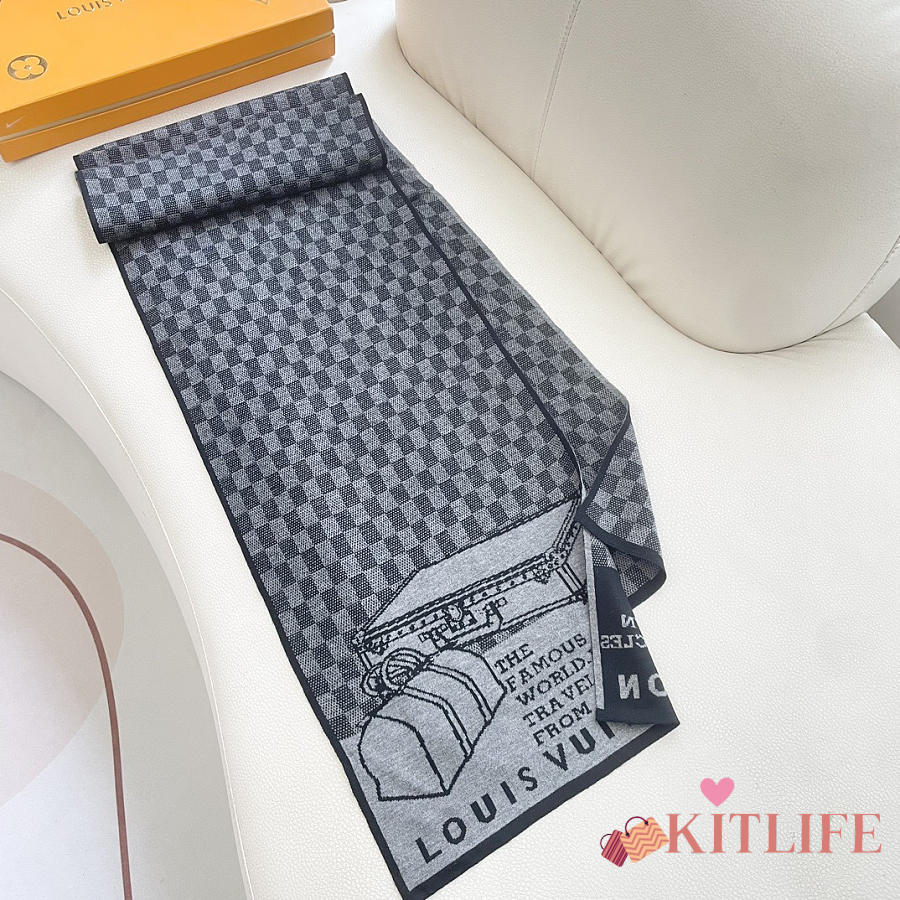 Kitlife Louis Vuitton LV Smash Scarf Grey & Black 180x32cm