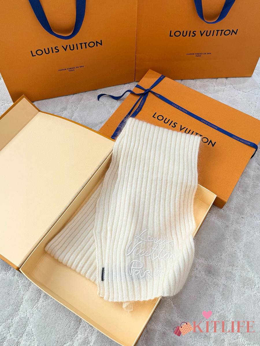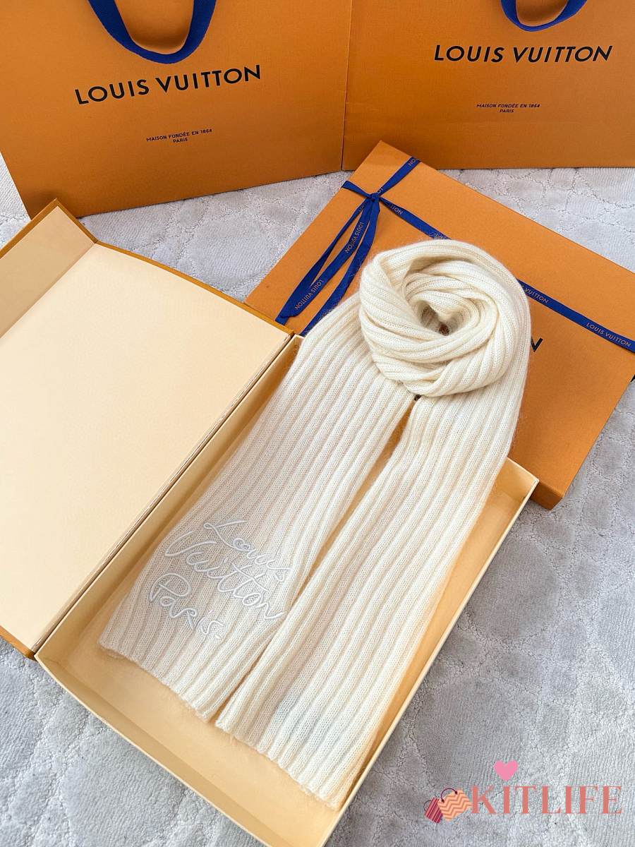 Kitlife Louis Vuitton Script Scarf Cream 200x24cm