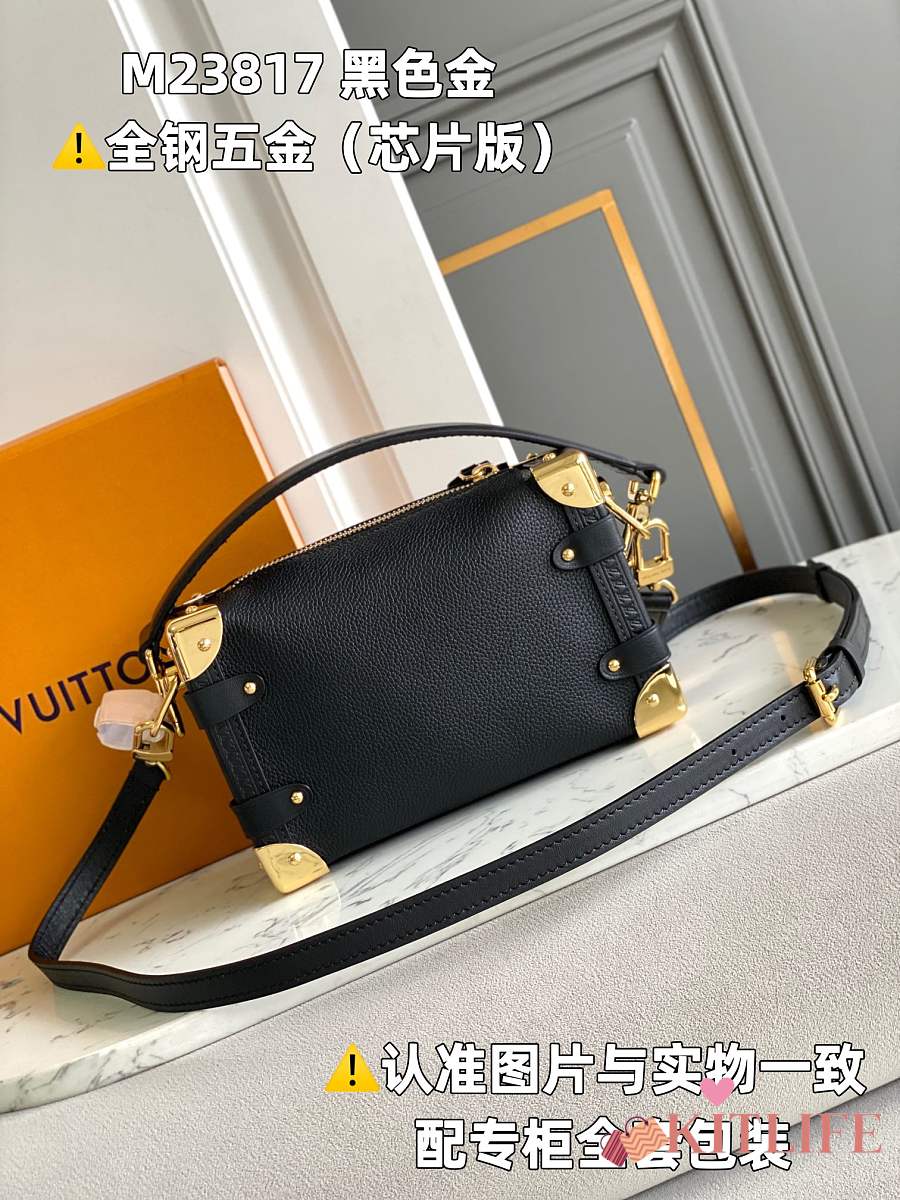 Kitlife Louis Vuitton Side Trunk Black with Gold Buckle M23817 18x12.5x8cm