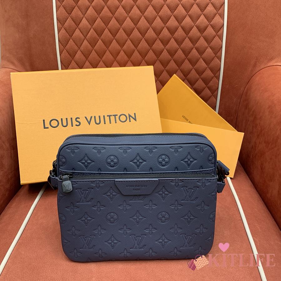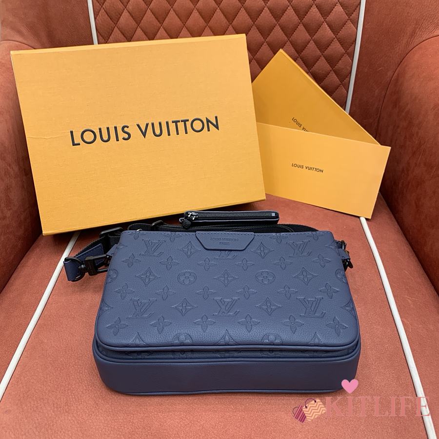 Kitlife Louis Vuitton Trio Messenger Dark Blue Monogram Shadow Leather Bag M27925 25x18.5x7cm