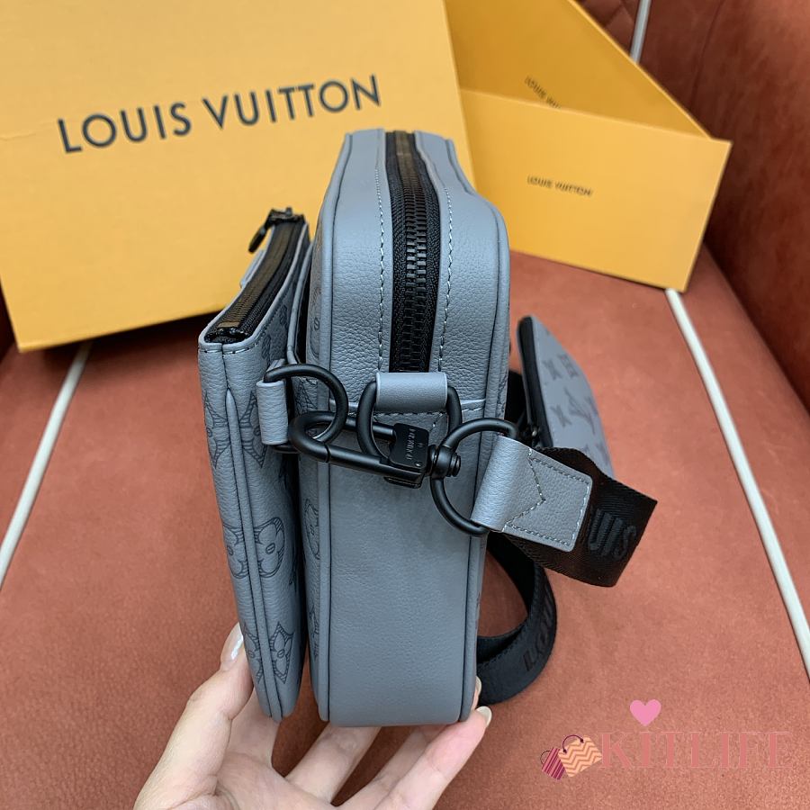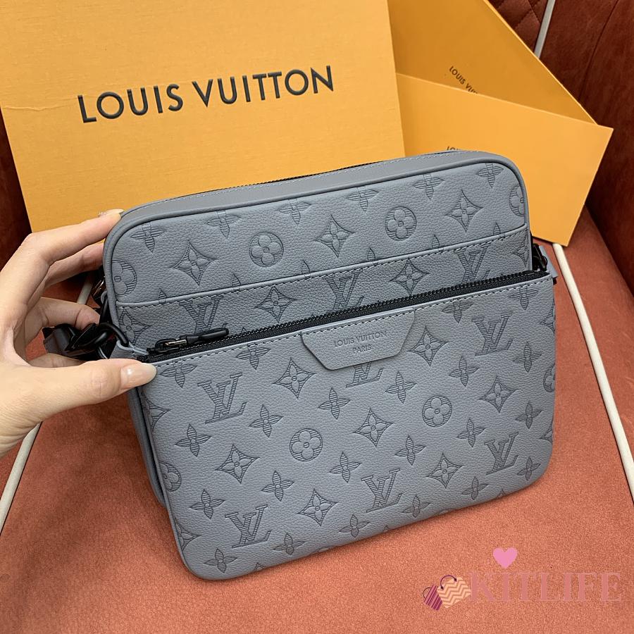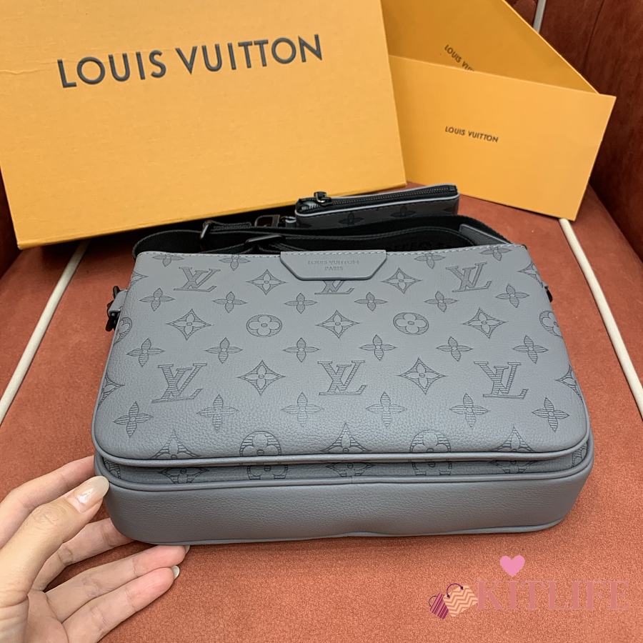 Kitlife Louis Vuitton Trio Messenger Grey Monogram Shadow Leather Bag M27185 25x18.5x7cm
