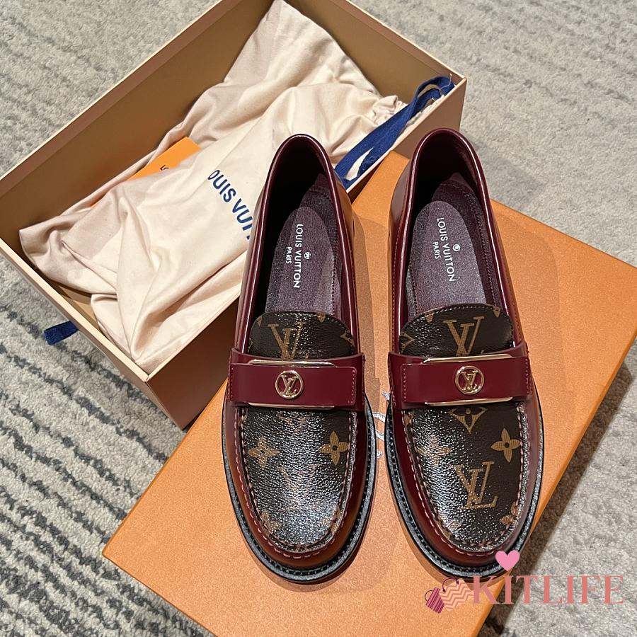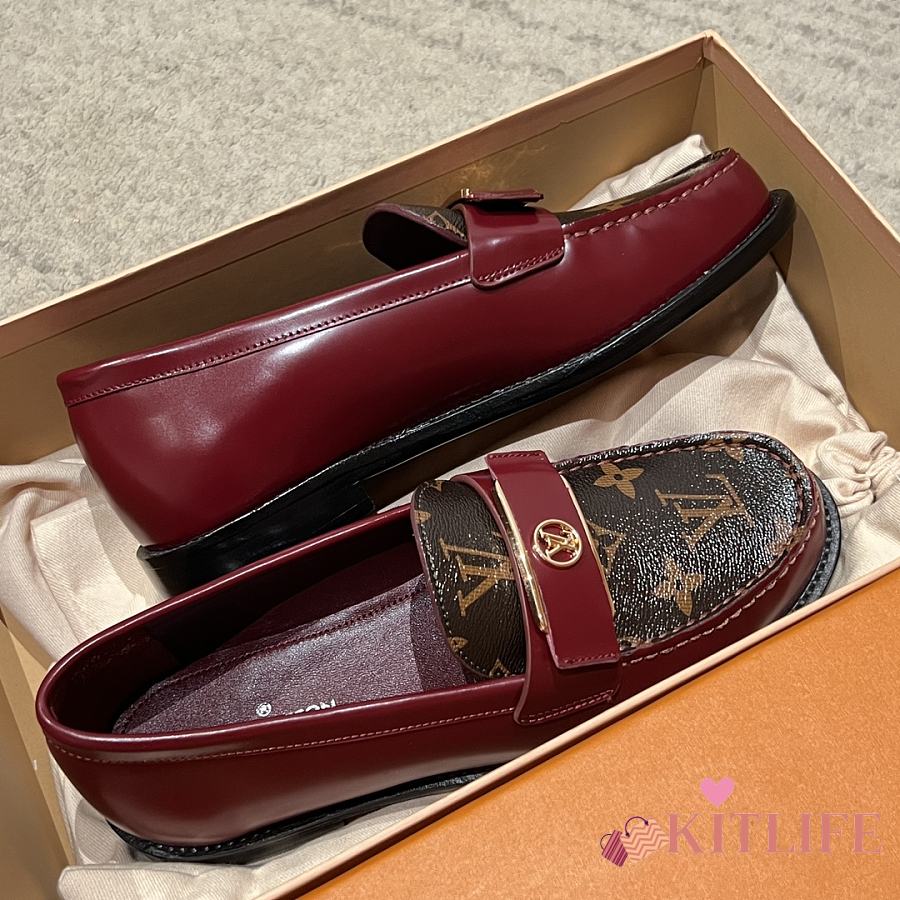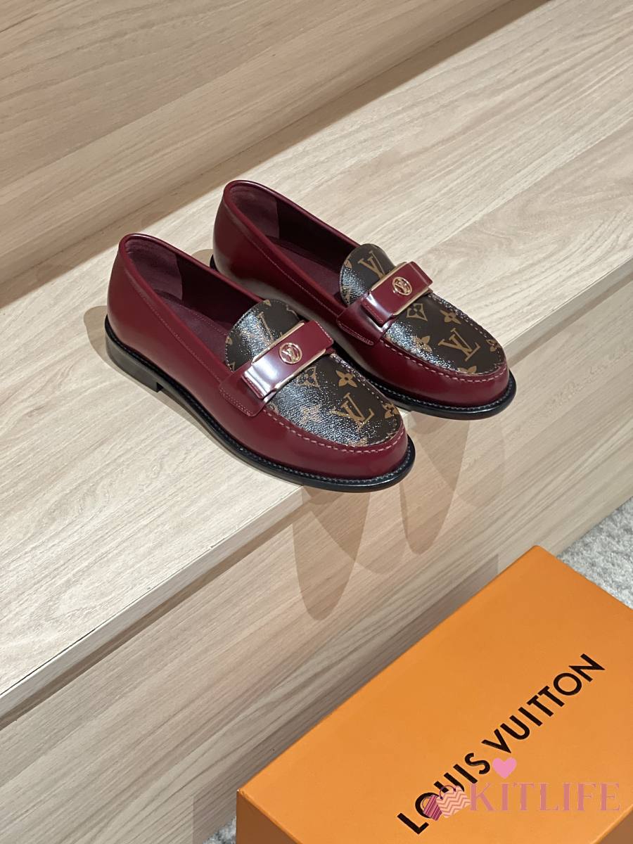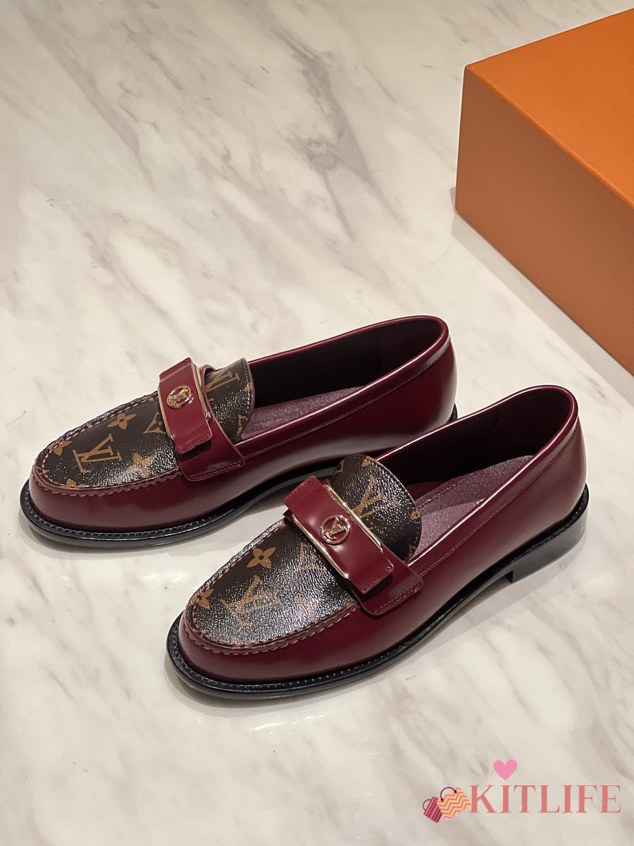 Kitlife Louis Vuitton V Classic Buckle Loafers Burgundy
